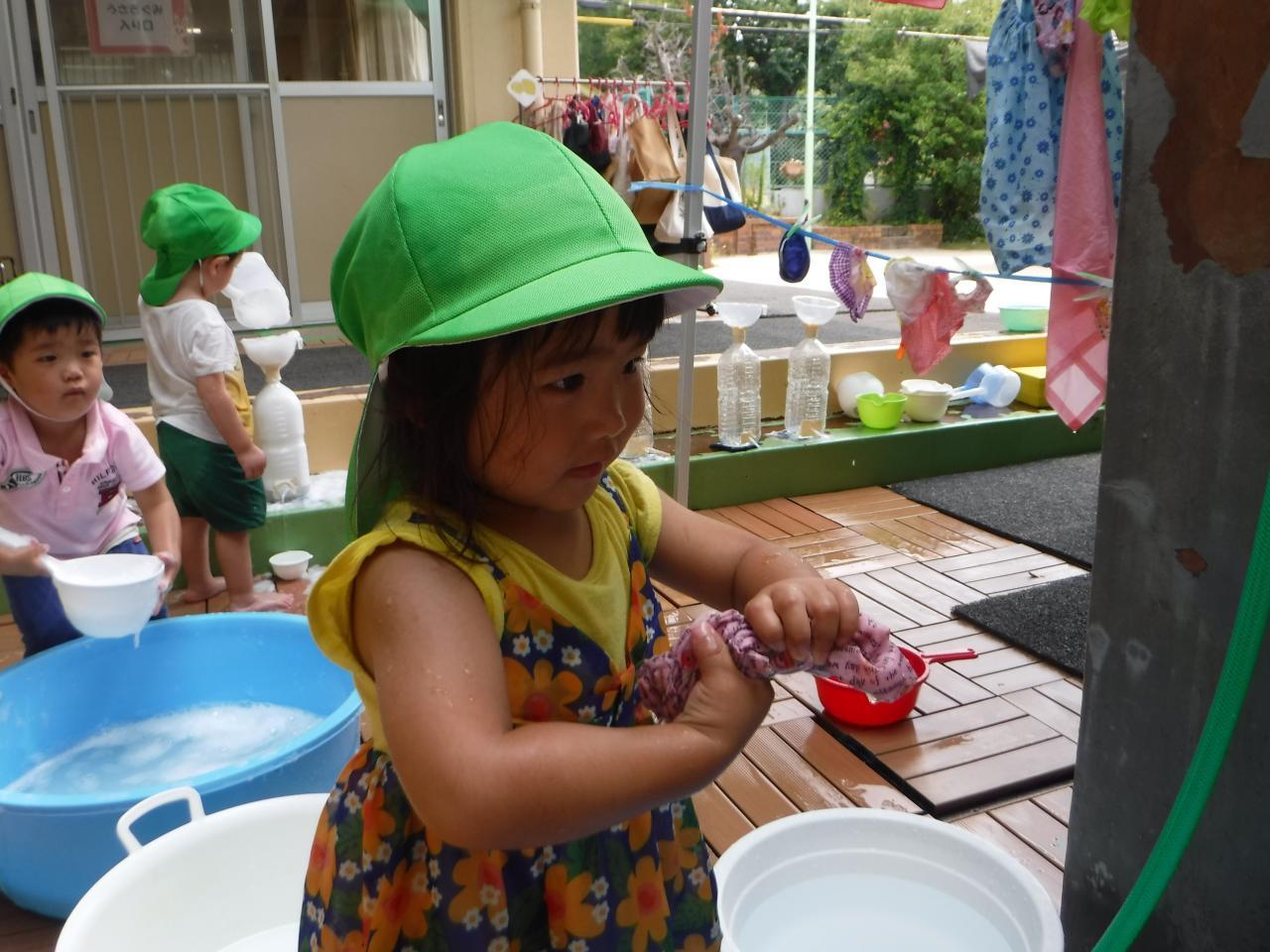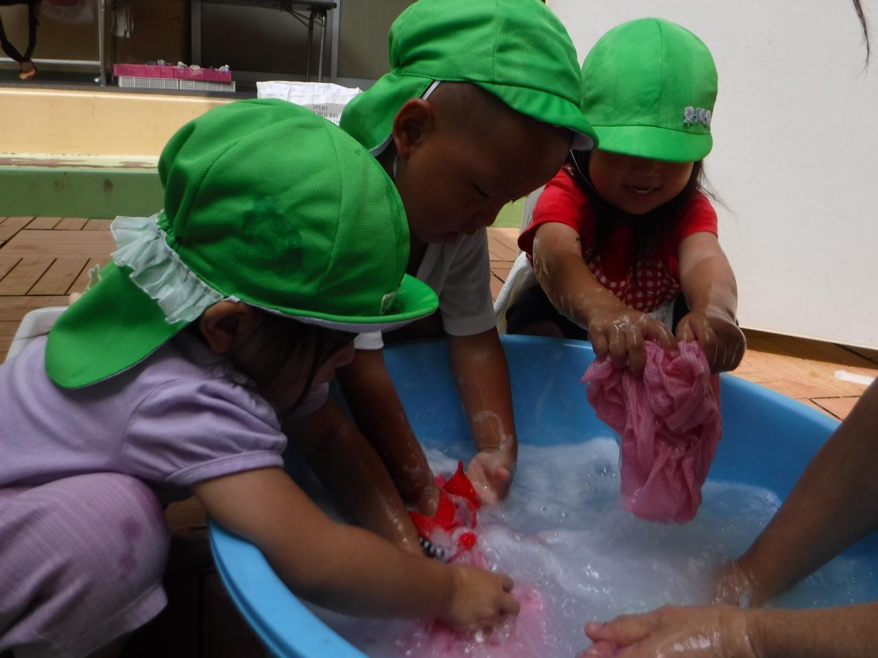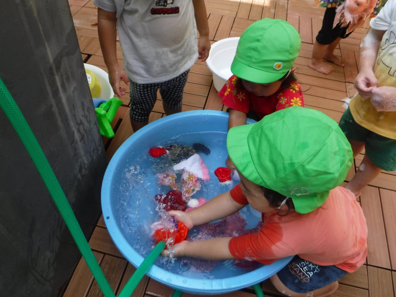 今日はみんなで洗濯ごっこをしました
