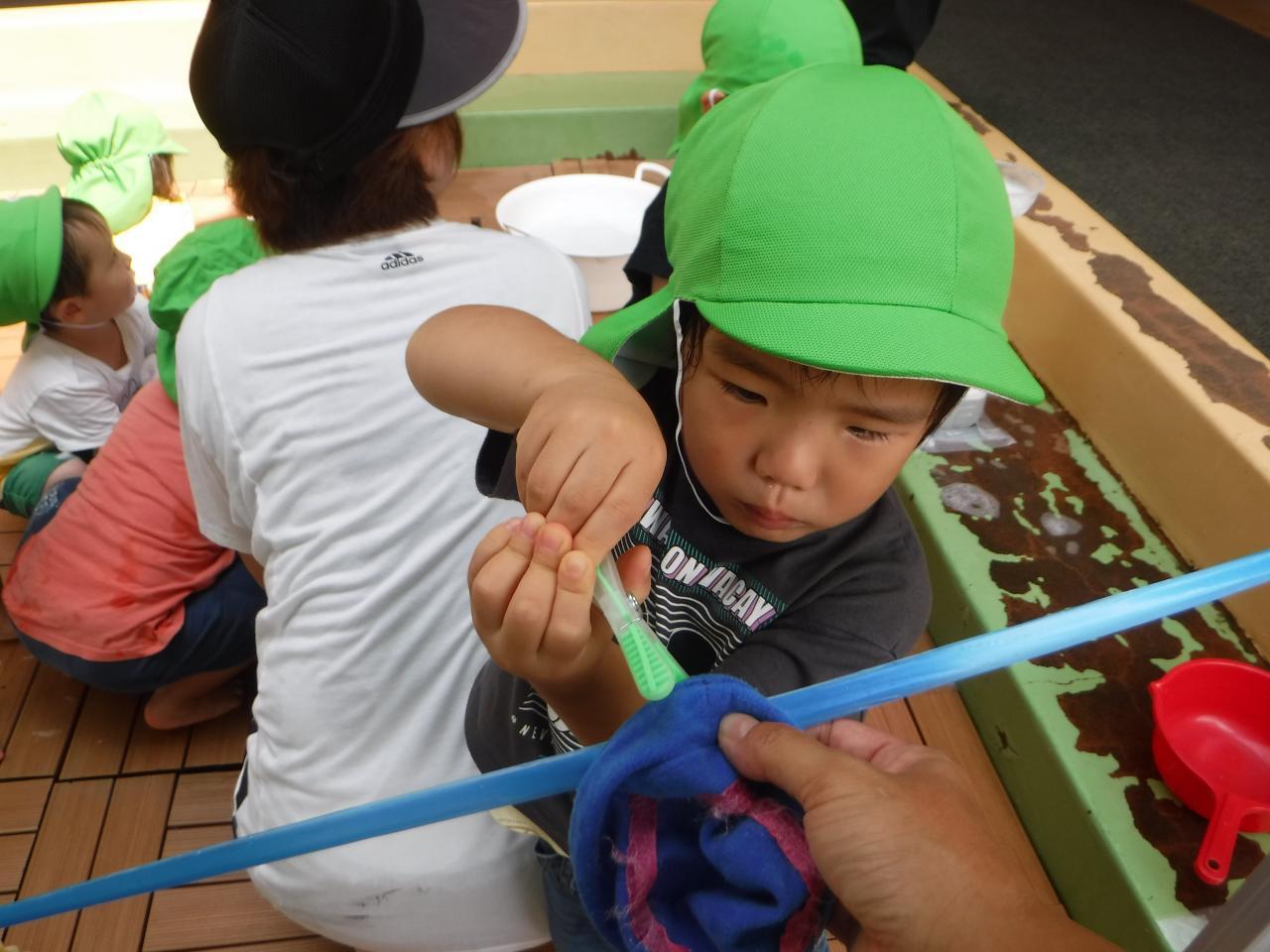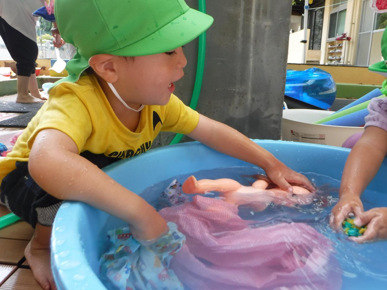 「ピカピカになったね!」「メルちゃん、きもちいい!っていってるね」など友だち同士で伝え合い、きれいになった心地良さを共有していましたよ!