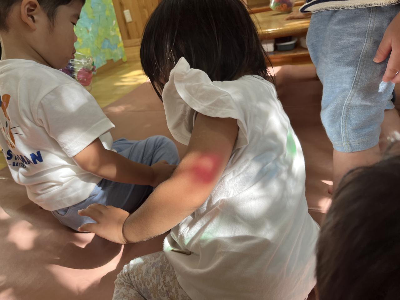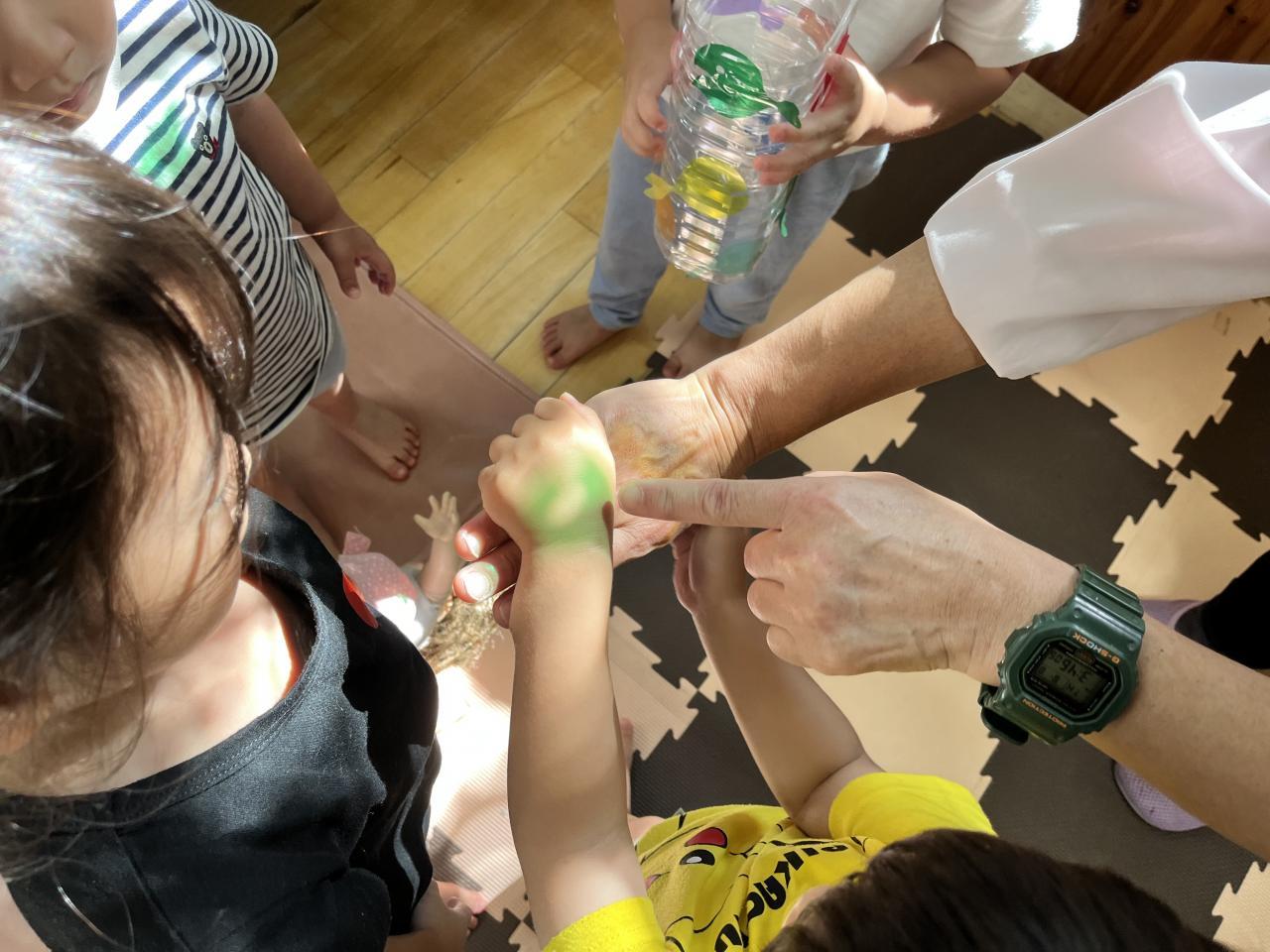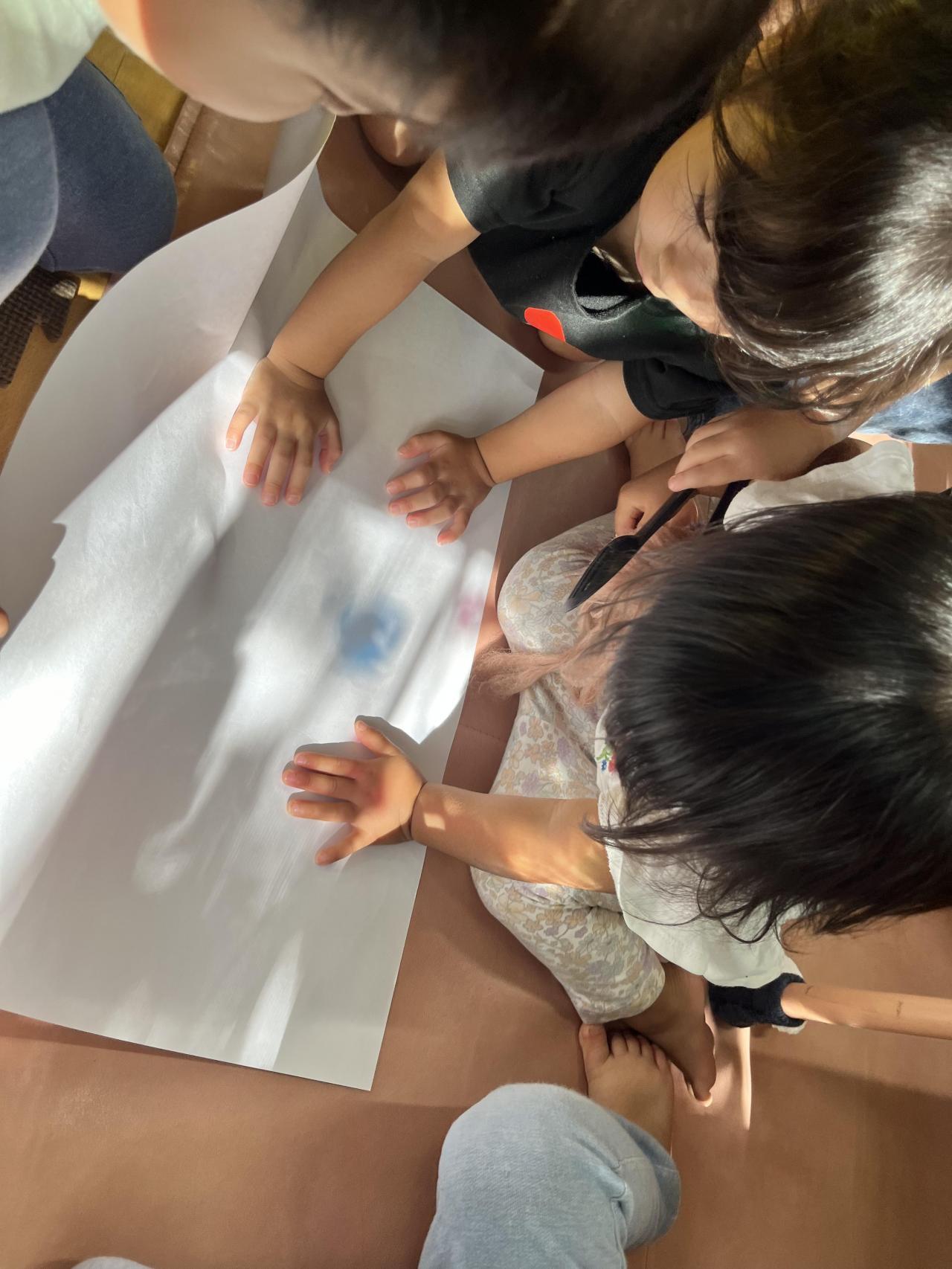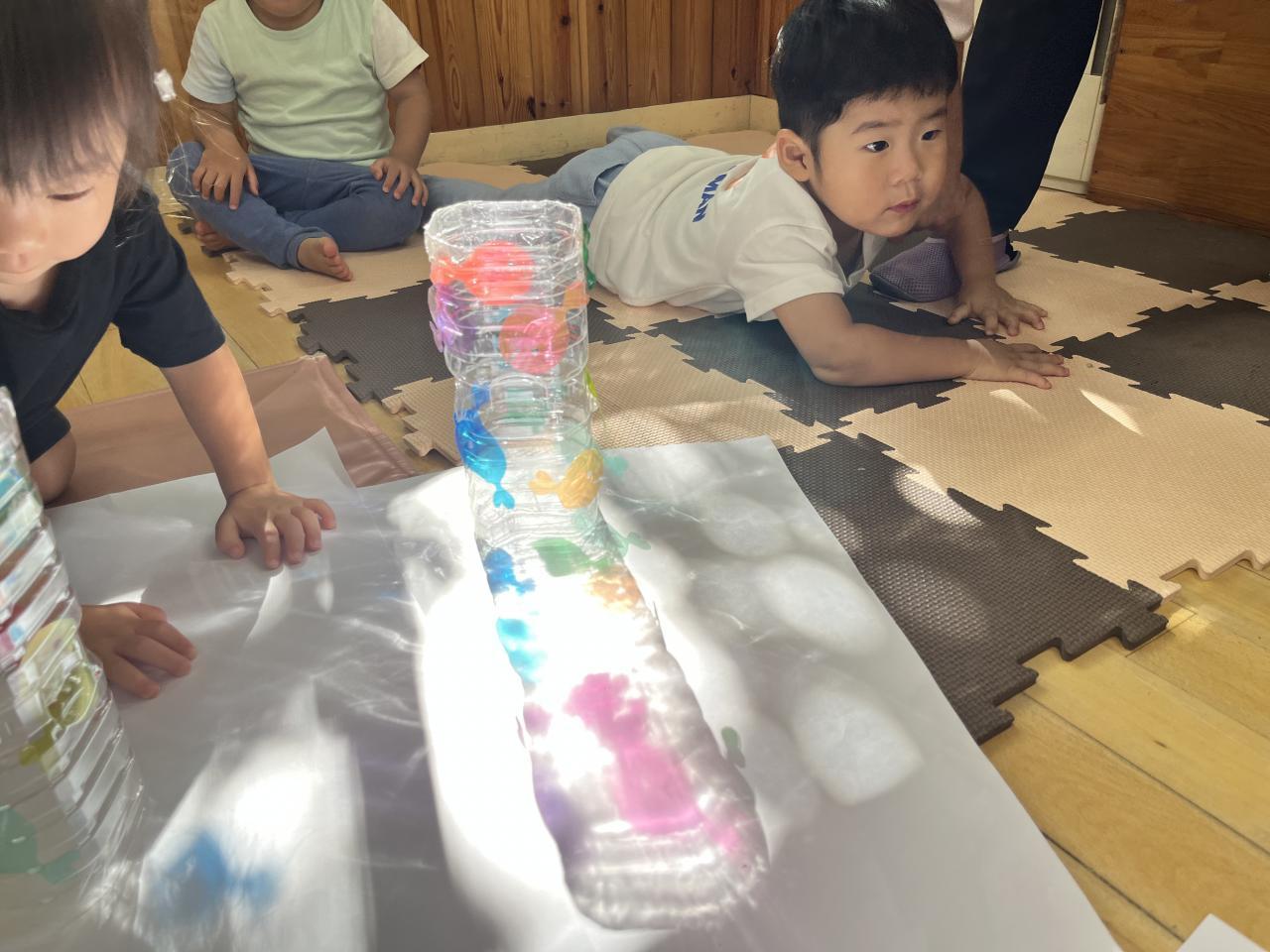 昨日の午後、保育室に差し込んだやわらかな日の光を使って「きんぎょがにげた」の光と影を使った遊びを継続して楽しみました♪