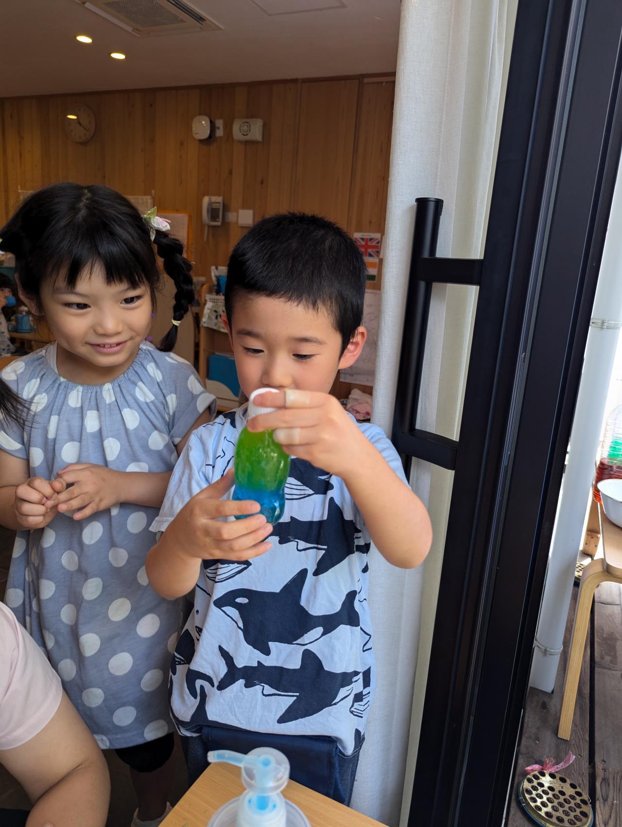 明日は、子どもたちのリクエストに応えジュースに名前を付けてジュース屋さんをOPENします😊