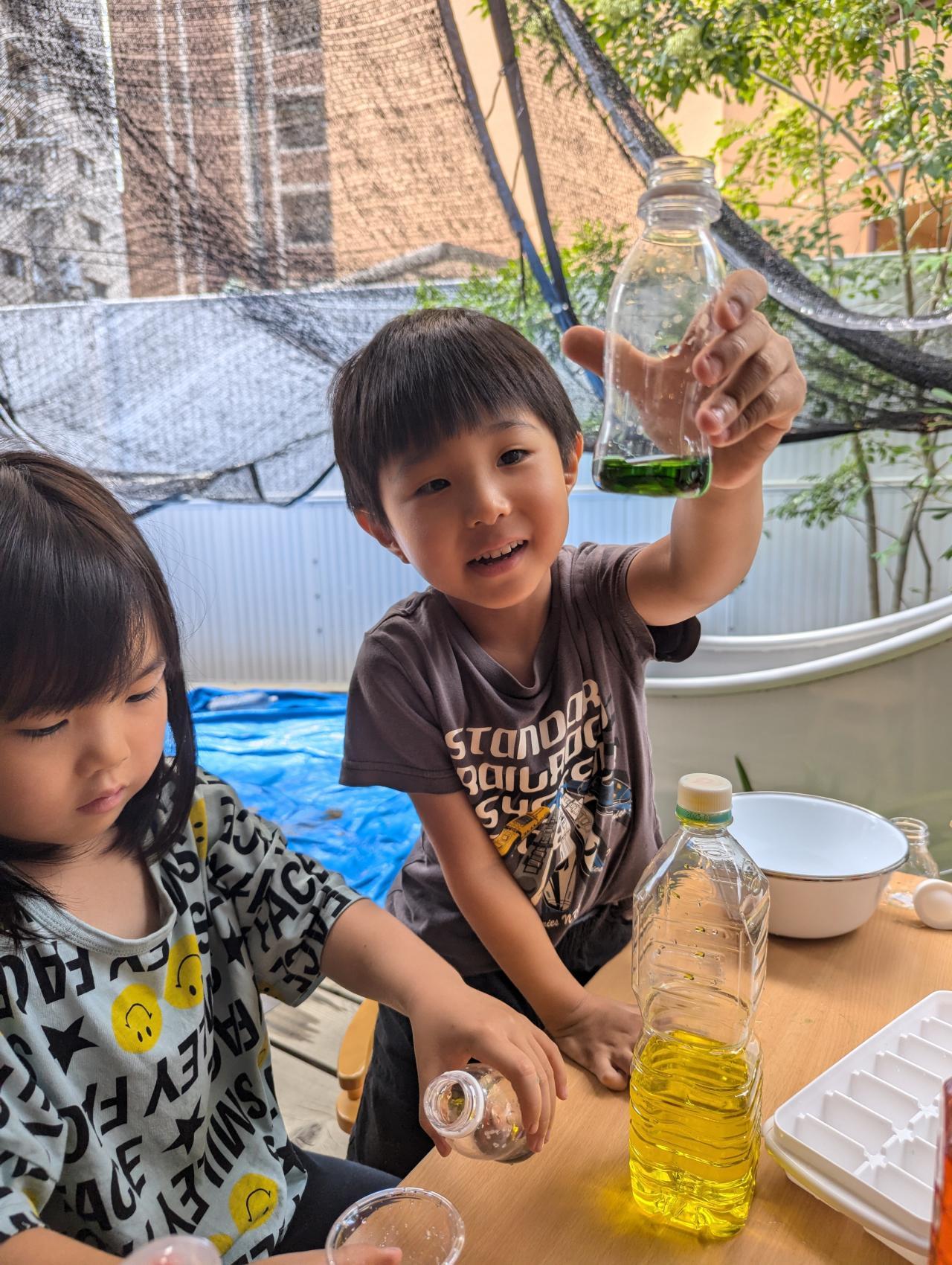 ☆色をつけたベビーオイルと色水を混ぜると・・・・