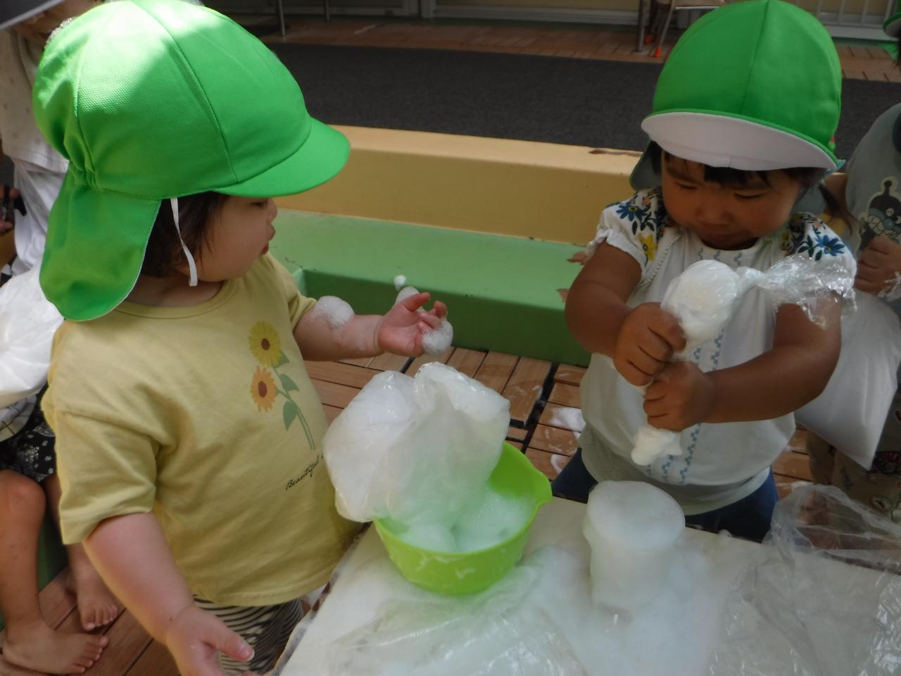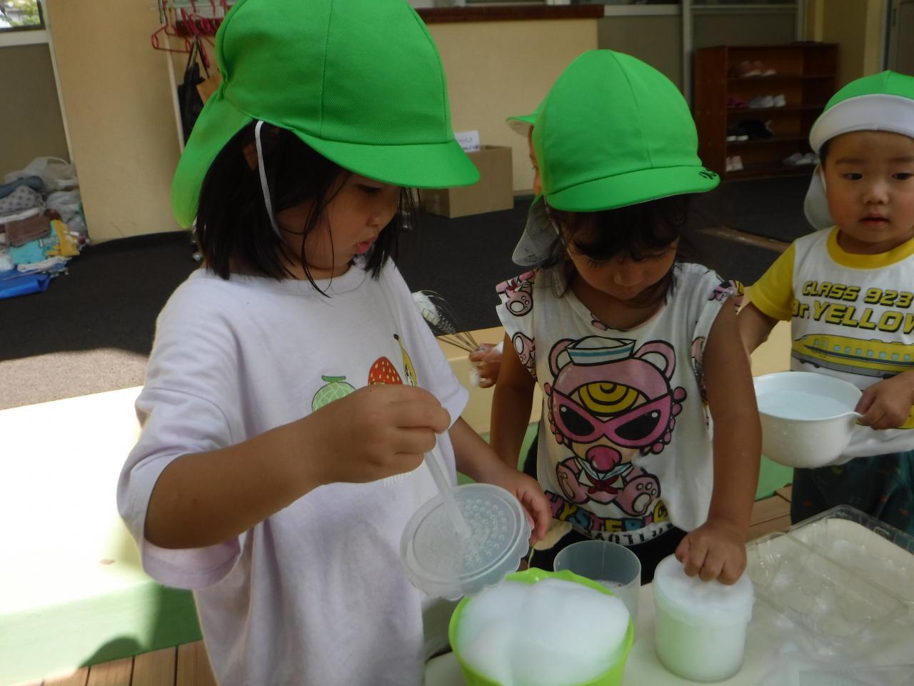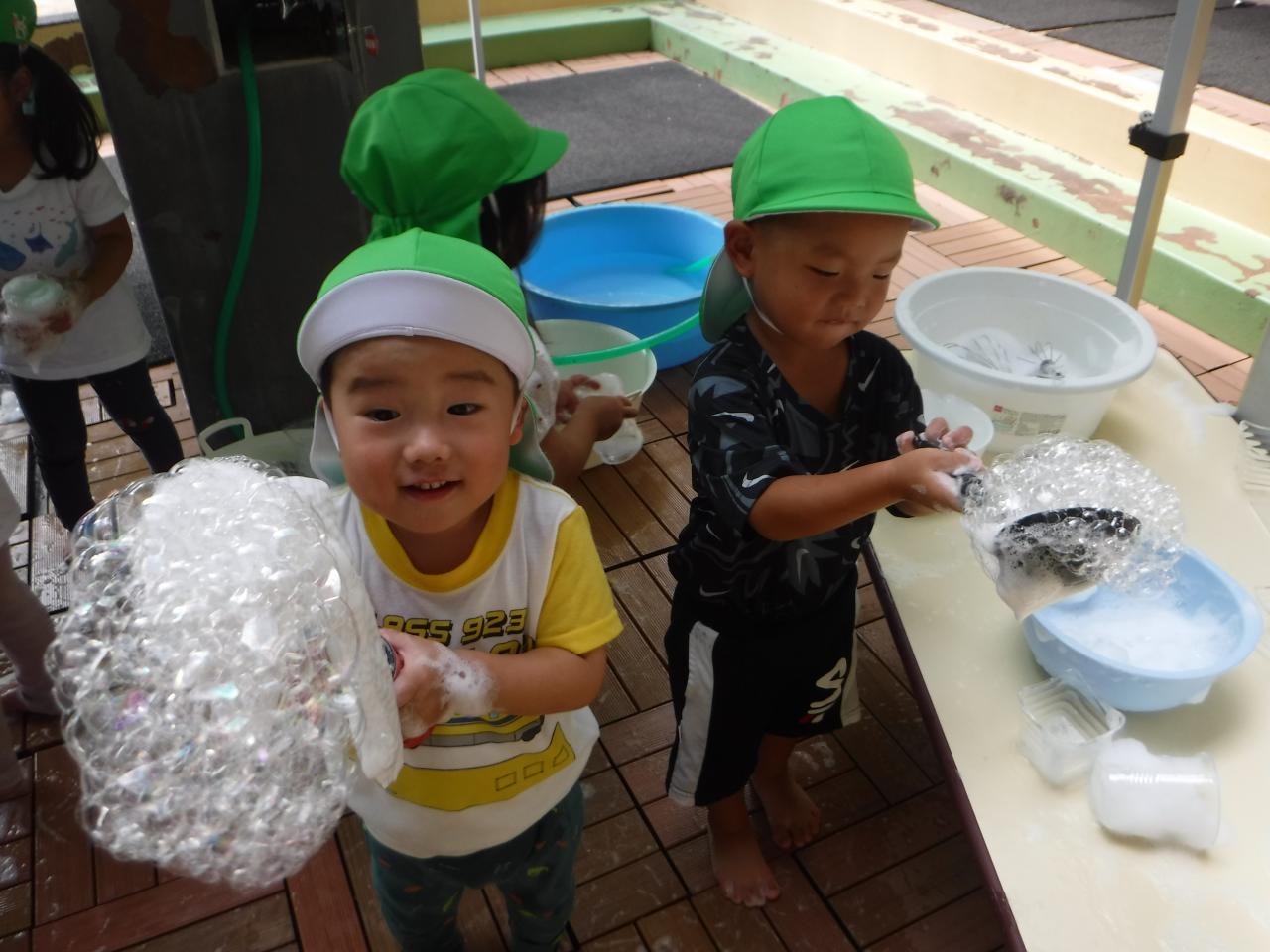 今日は泡あそびをしました