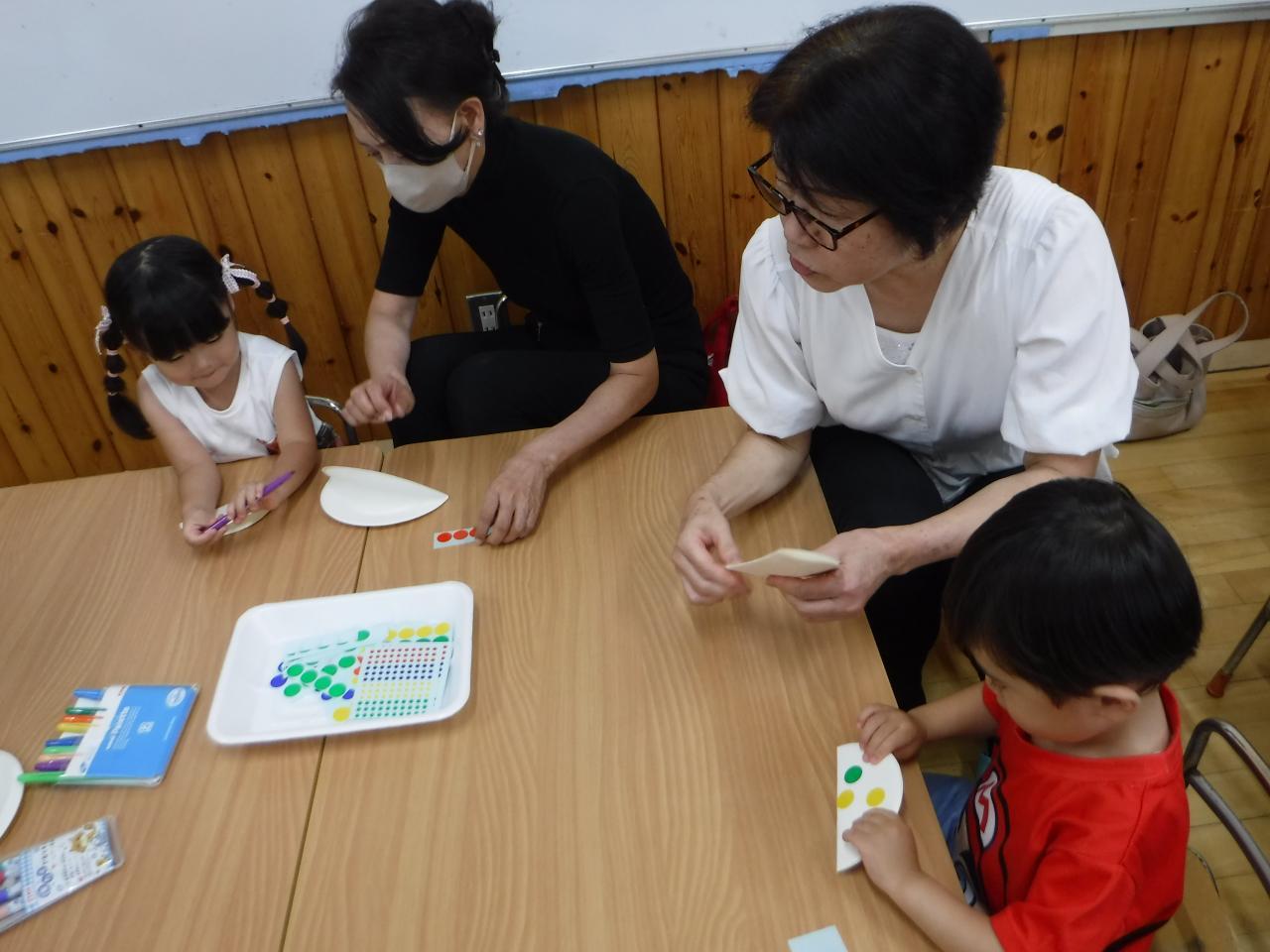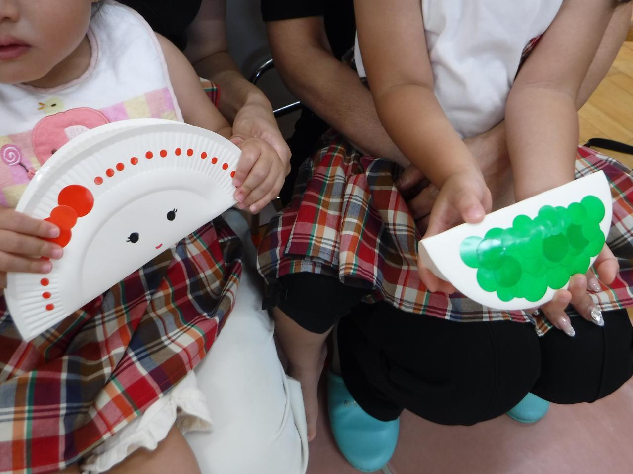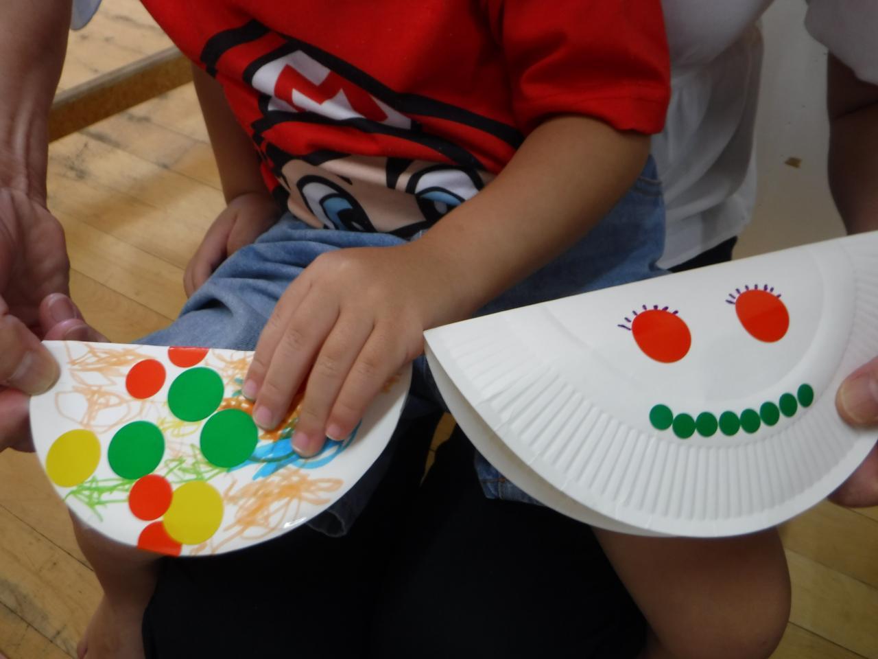 手作りのカスタネットが完成すると、嬉しそうに友だちと見せ合ったり「(ぼくのカスタネット)こんなおとがするよ!」と、音楽に親しみ楽しむ姿がみられましたよ!