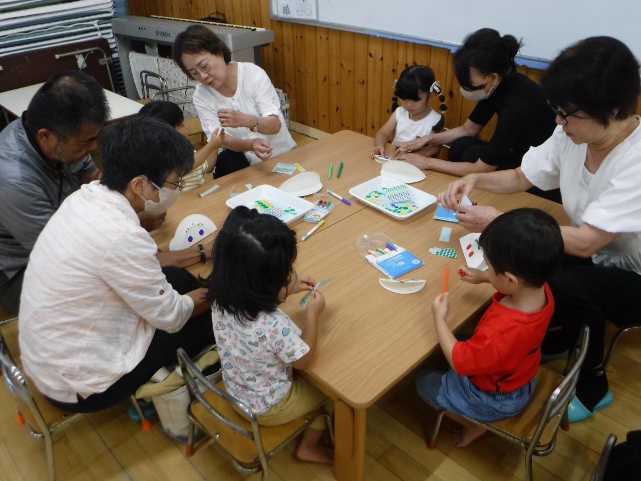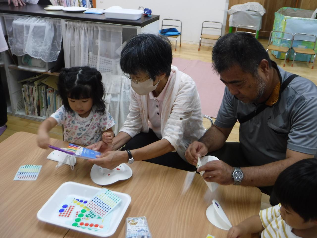 今日は敬老ウィーク2日目でおじいちゃんとおばあちゃんと一緒に「カスタネットづくり」を楽しみました