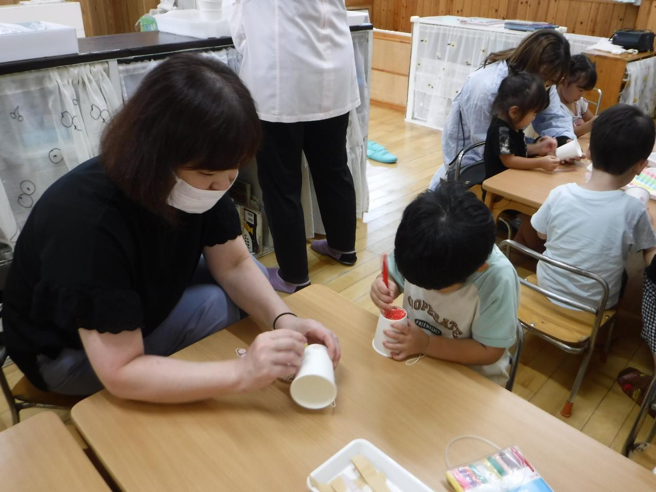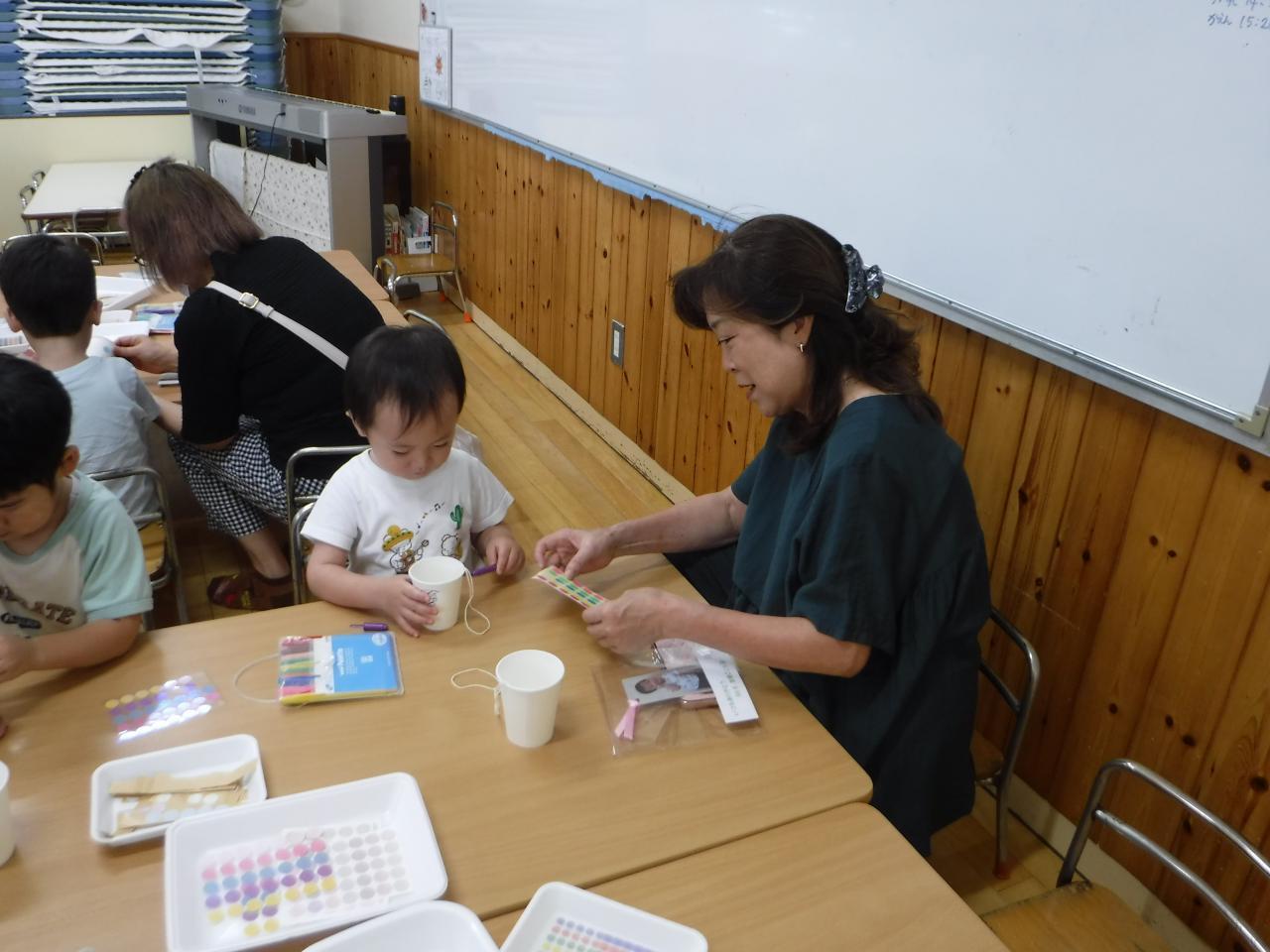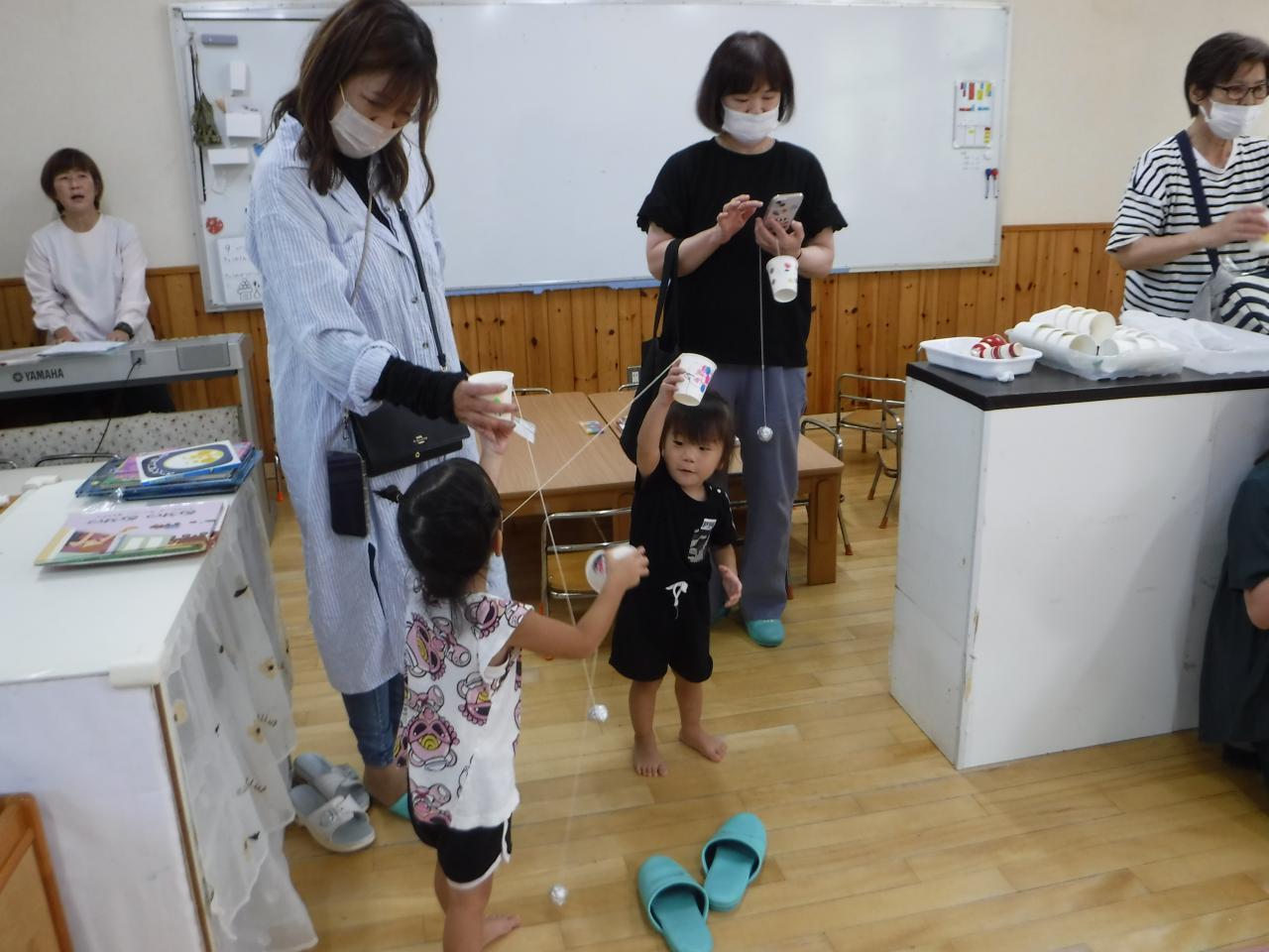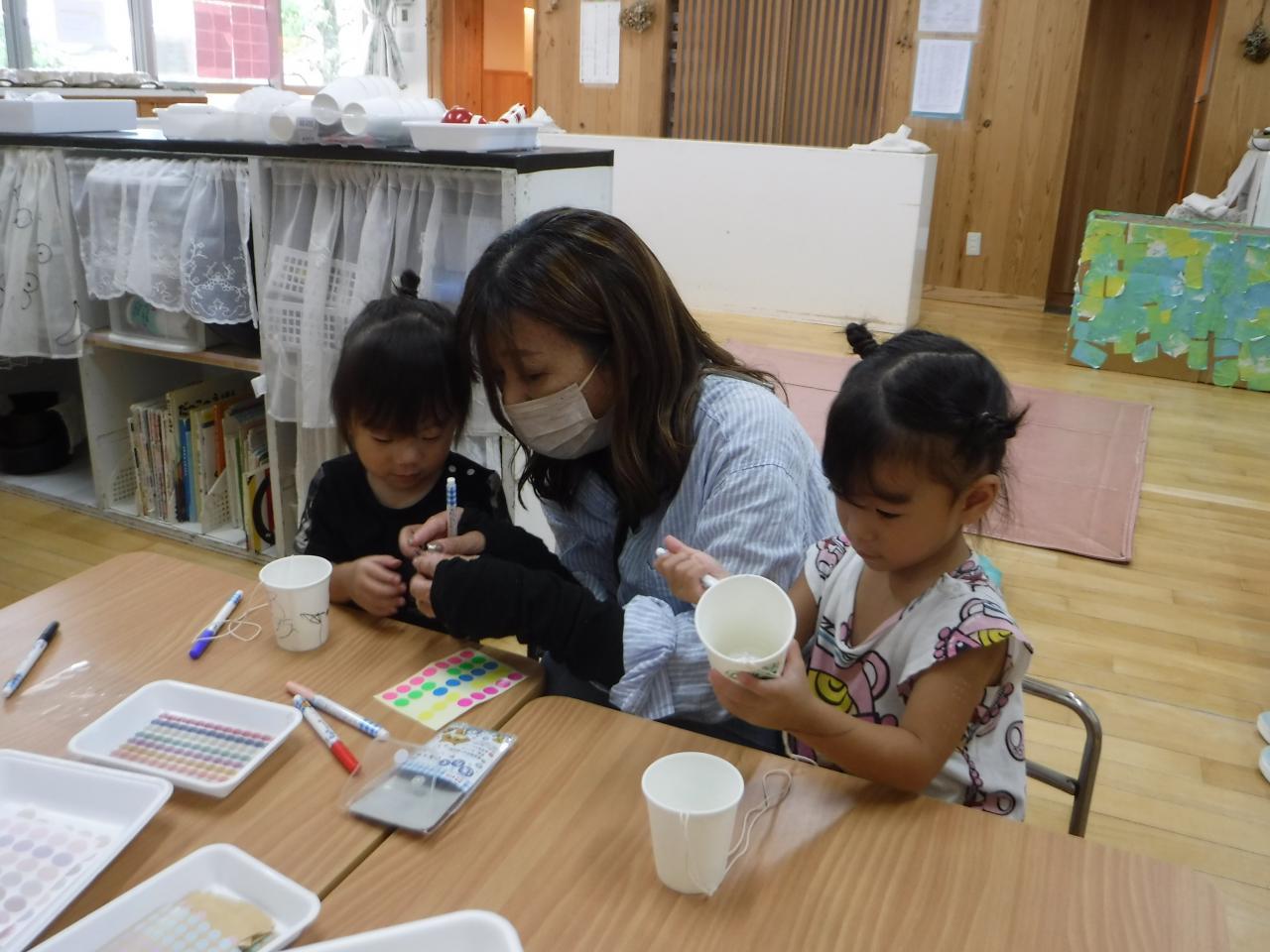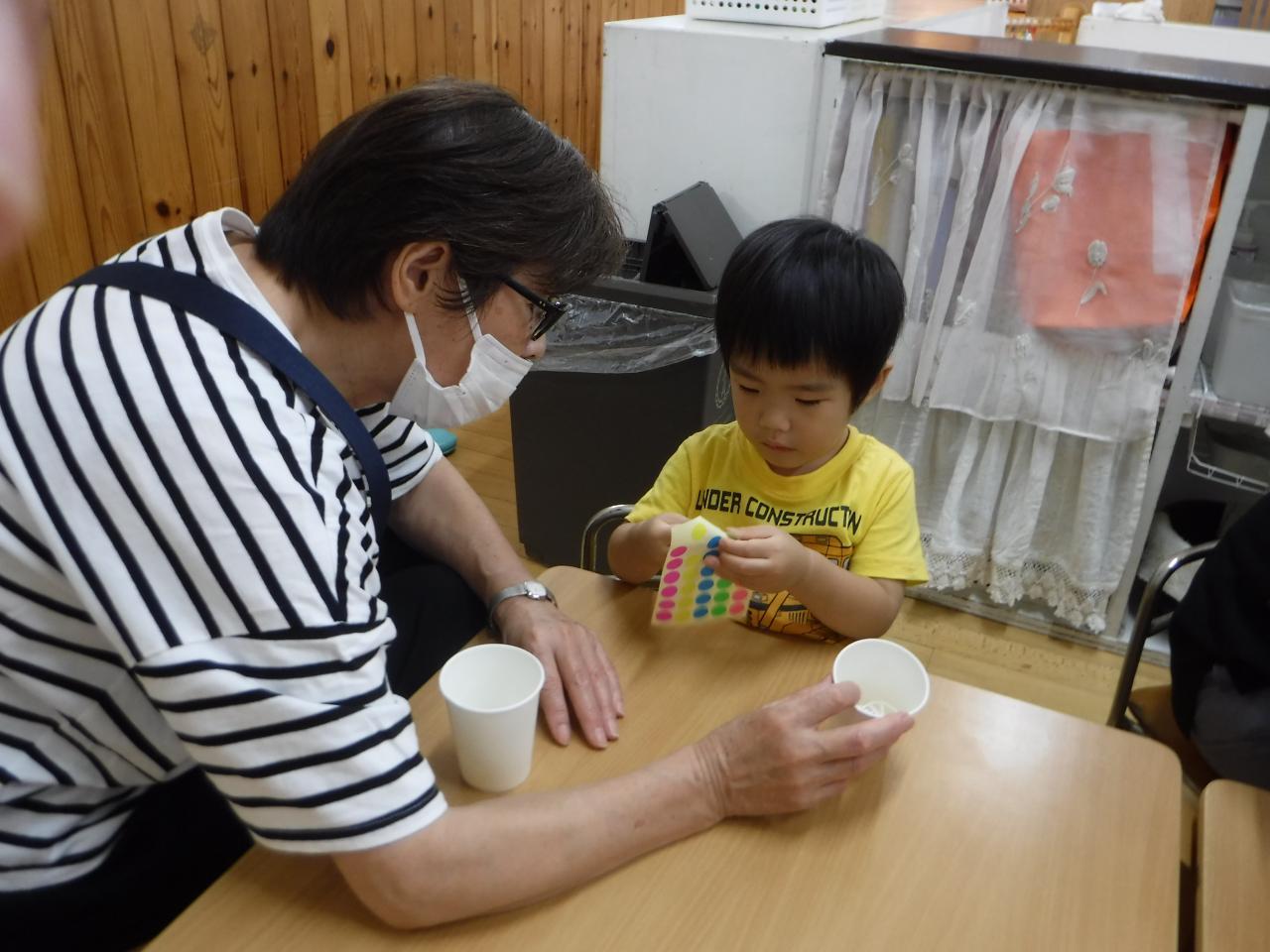 敬老ウィーク3日目の今日はおじいちゃんとおばあちゃんと一緒にけん玉をつくりました