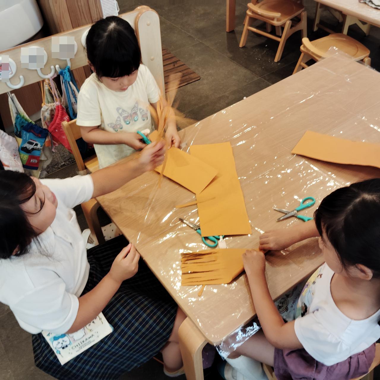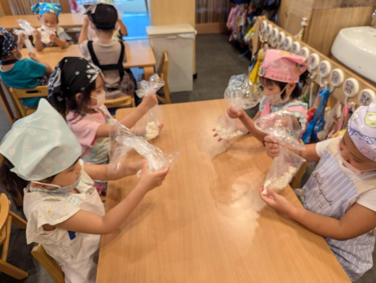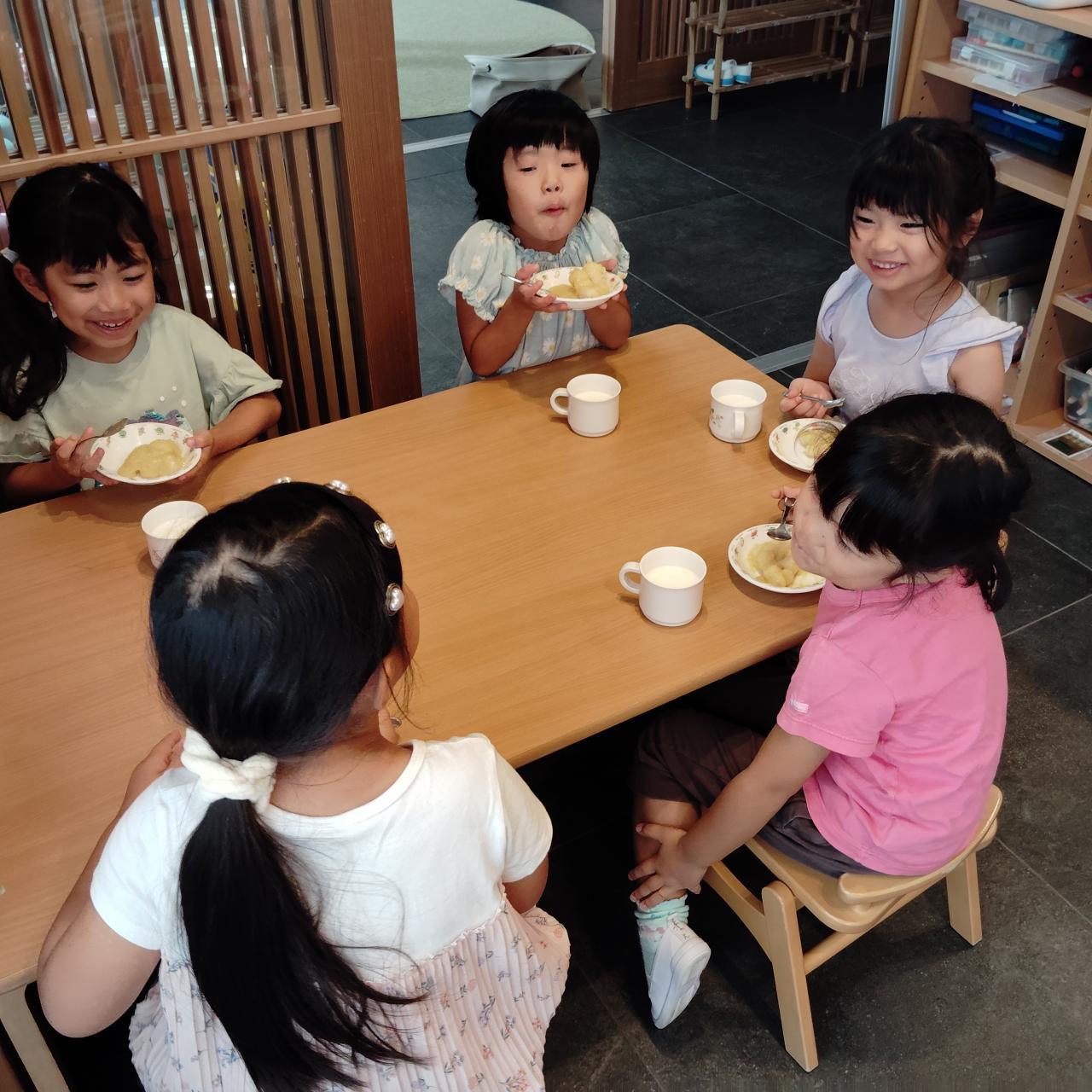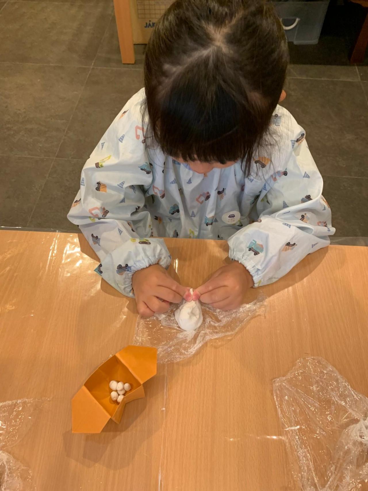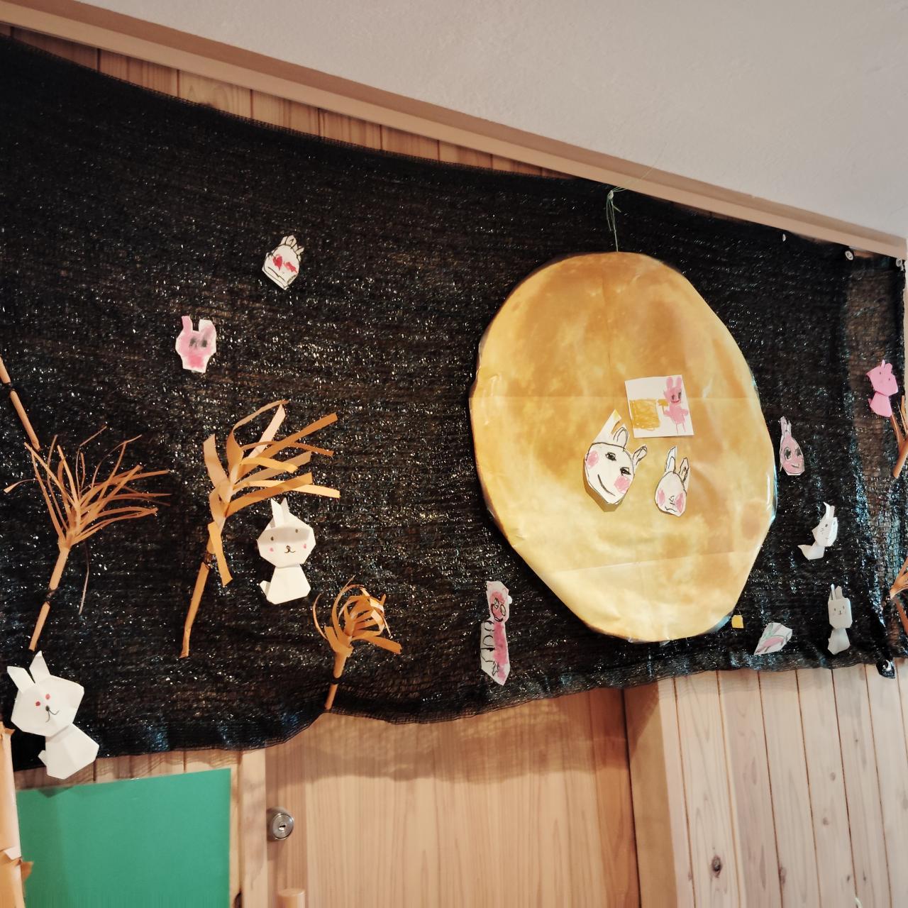 今日9月17日は【中秋の名月】です。各自お部屋ではお月見の制作や飾りつけをしたり、4,5歳児は午後からお月見団子を作っておやつで頂きました。