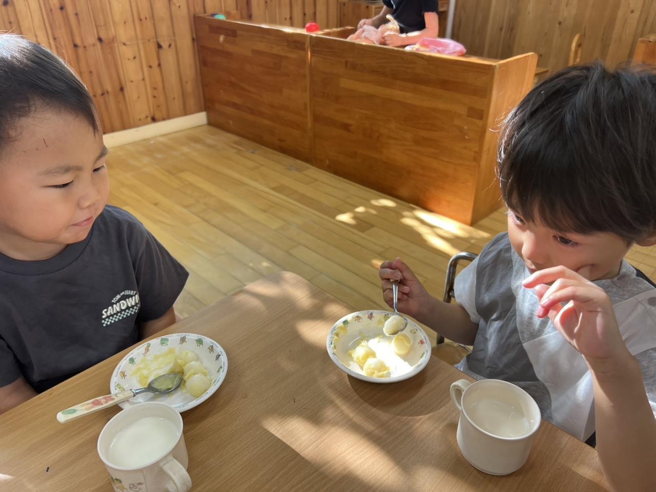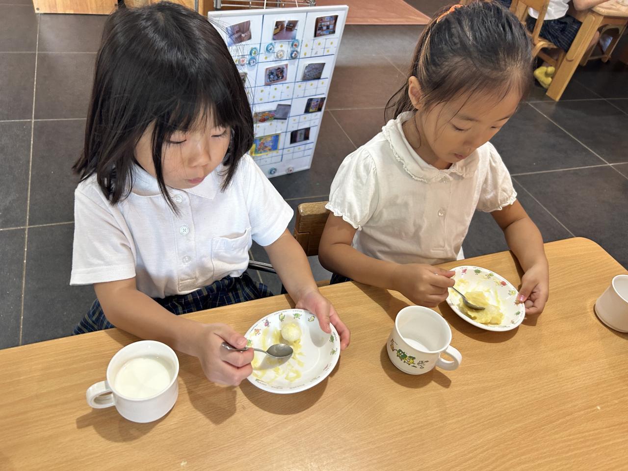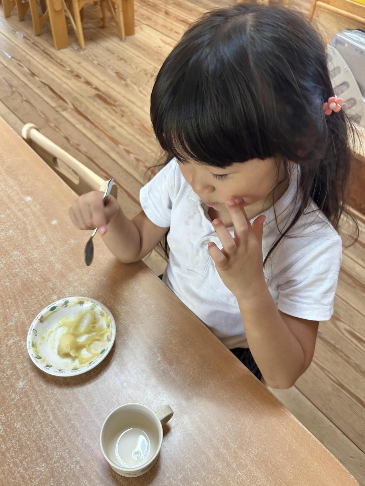 「月みたいな色だね」と子ども同士で伝え合い、笑顔で食べていましたよ。