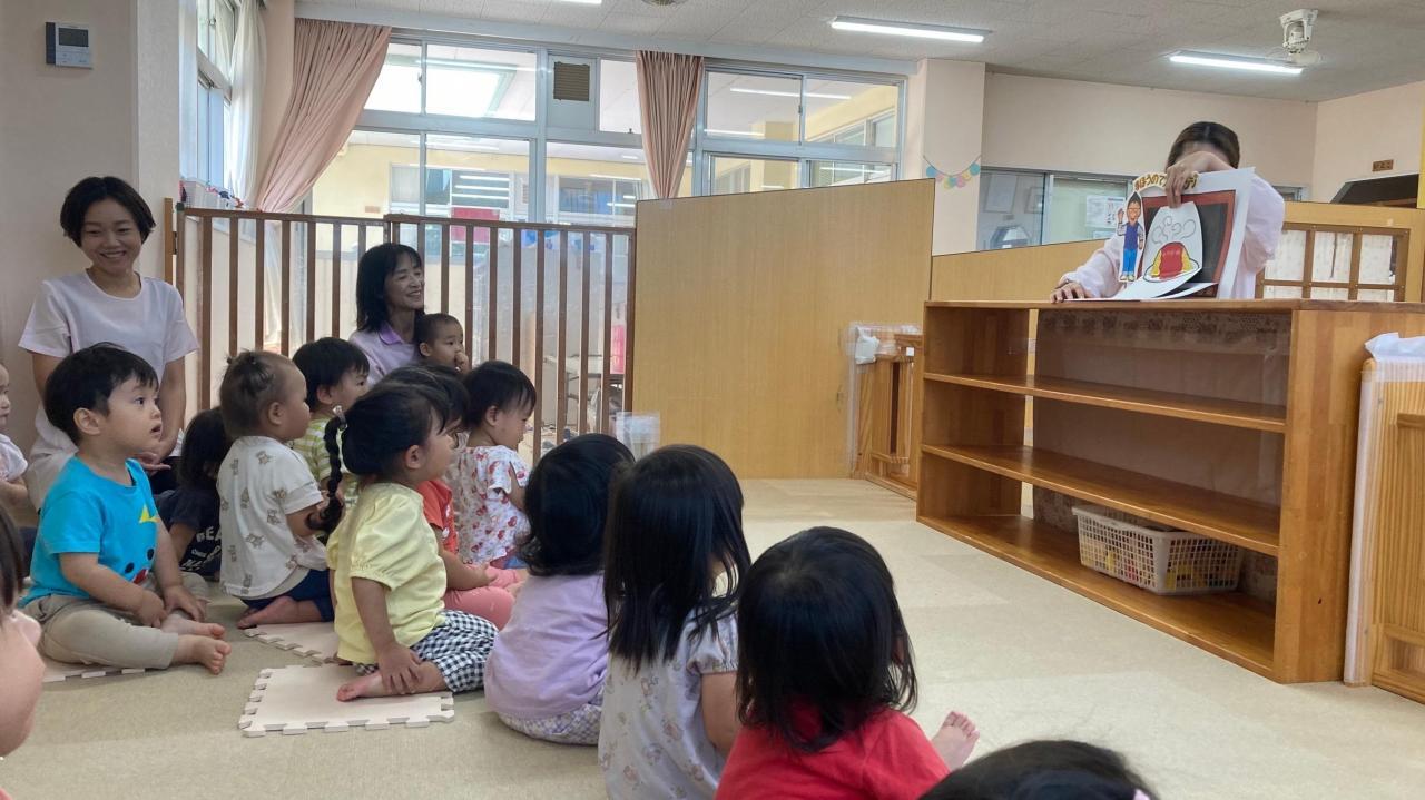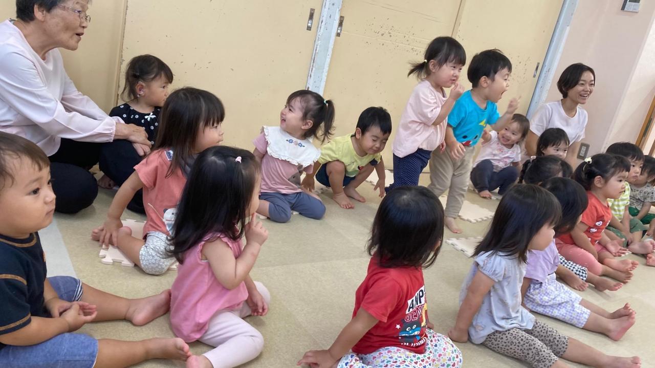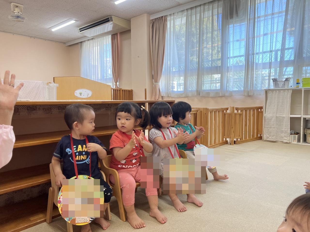 誕生日の子には「何さいになりましたか?」と、質問をすると、みんなが見てるので少し緊張した表情を浮かべながら、2歳のポーズをしようとしていました。