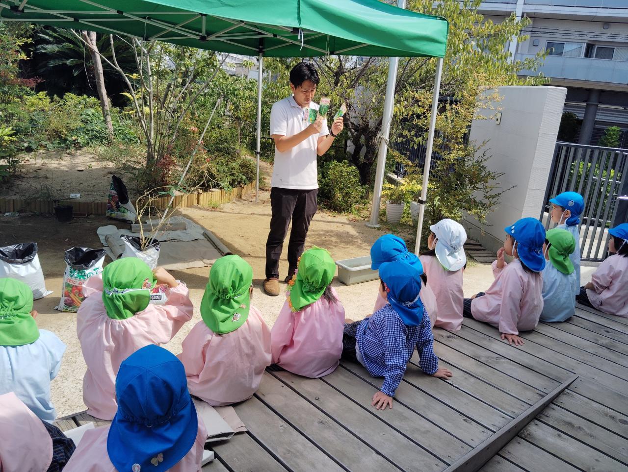 給食では、小松菜や、青梗菜、ほうれん草が出てきた時に、時々、「これは何の野菜だろう~」と分かりにくい時もあるようなので、この青野菜を育てる事で形の違いや味の違いに興味を広げて行ってもらえたらと思います。