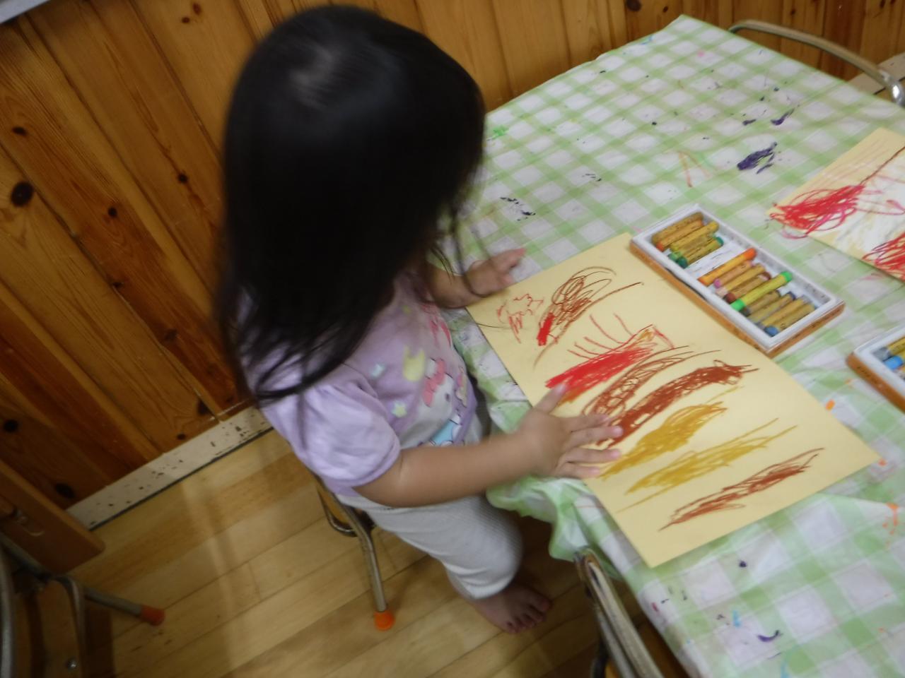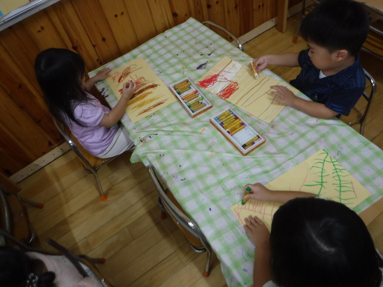 実際見に行った木の様子を思い出しながらクレヨンで描きました