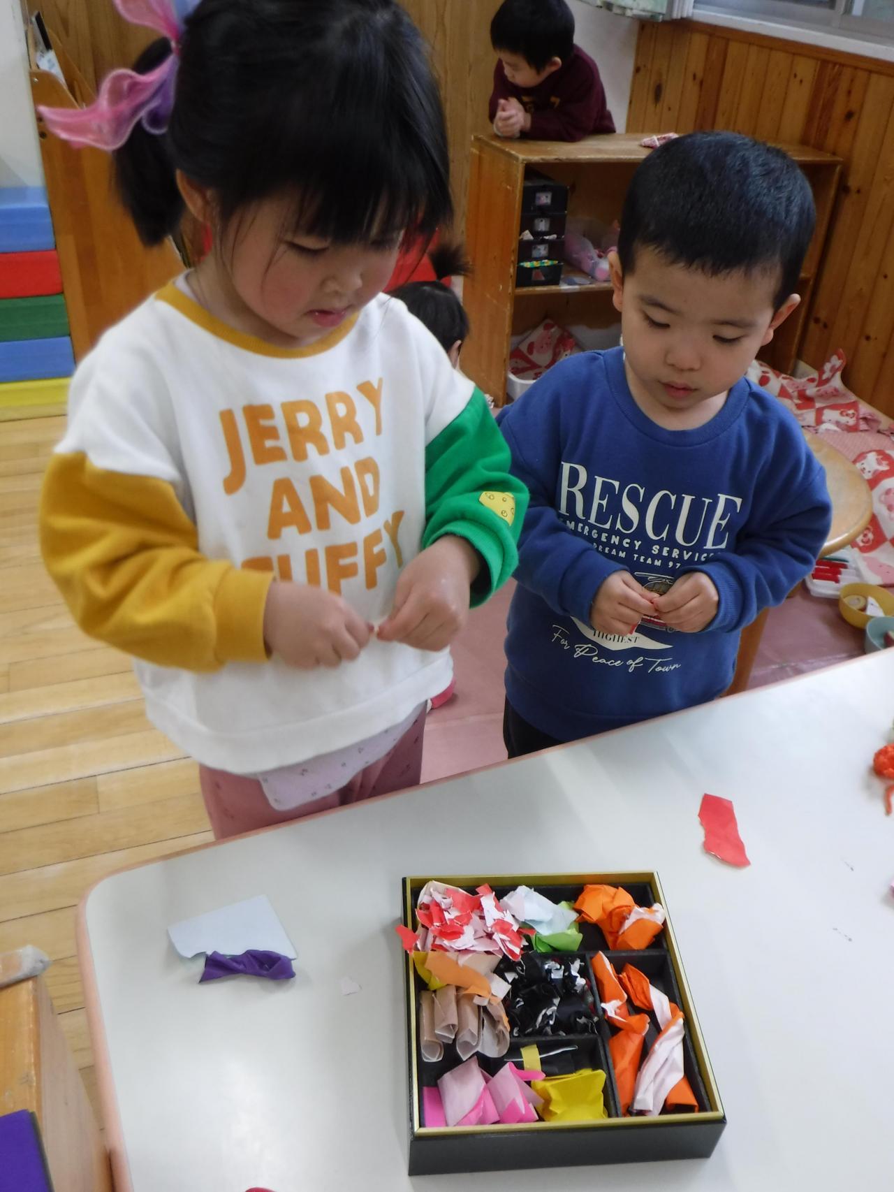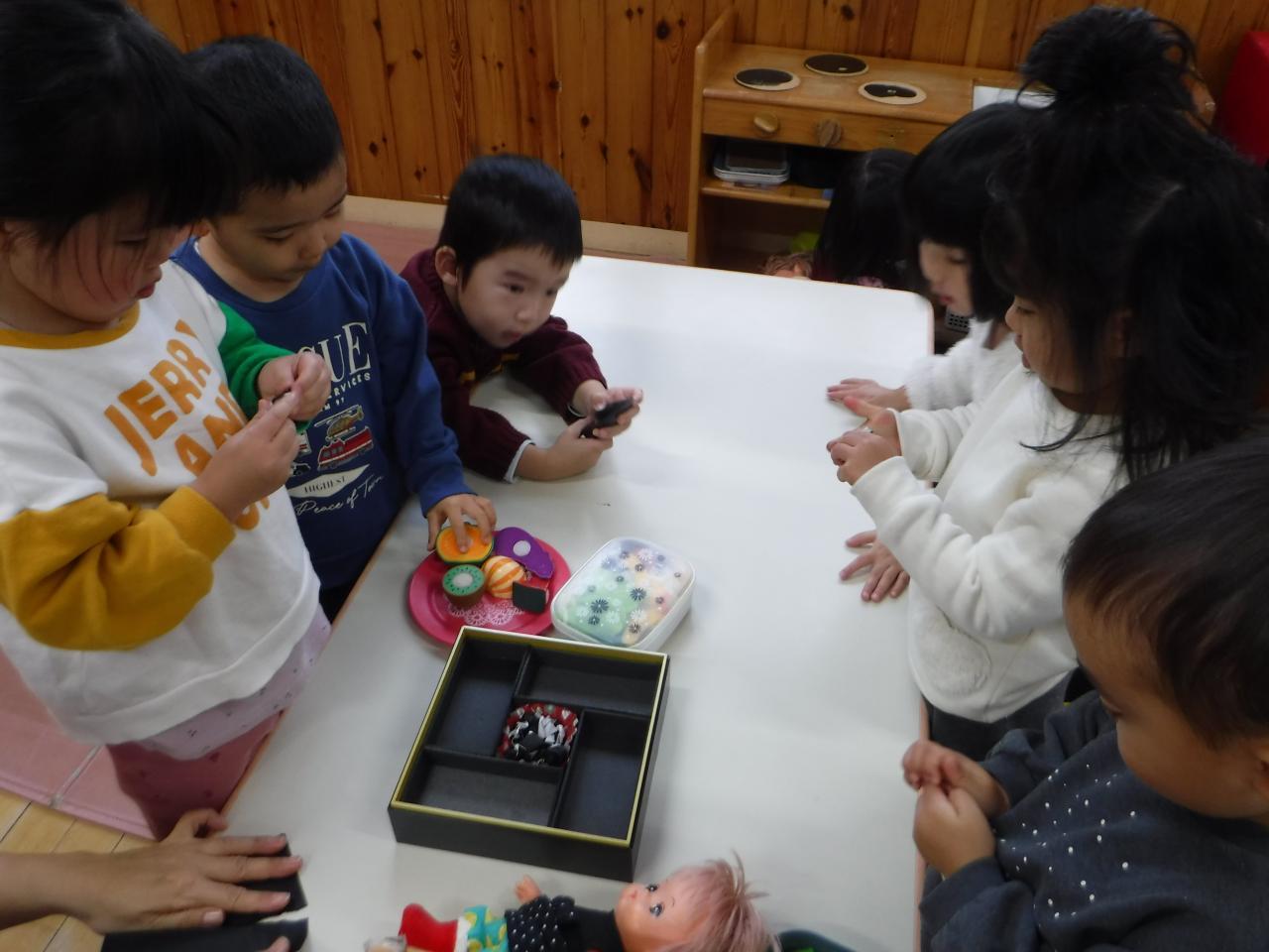 ☆折り紙を使って、「おせち料理ごっこ」をしました