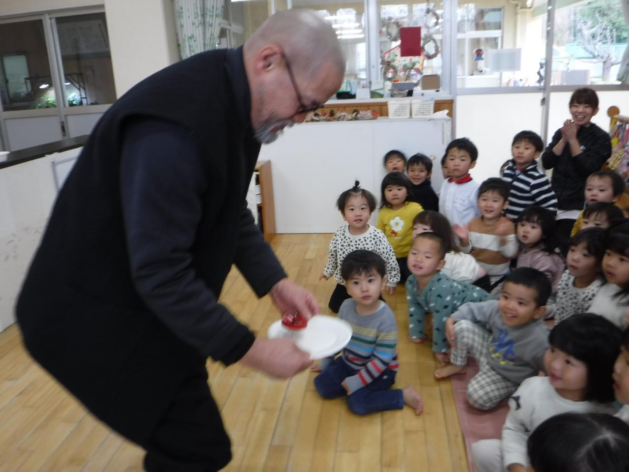 園長先生が見せて下さる息をのむようなコマの技の数々に、子ども達も大喜び。