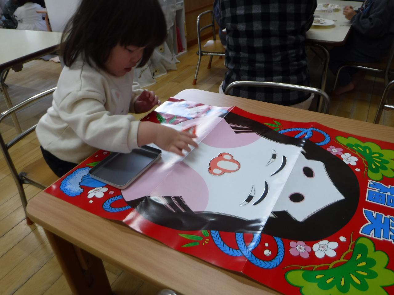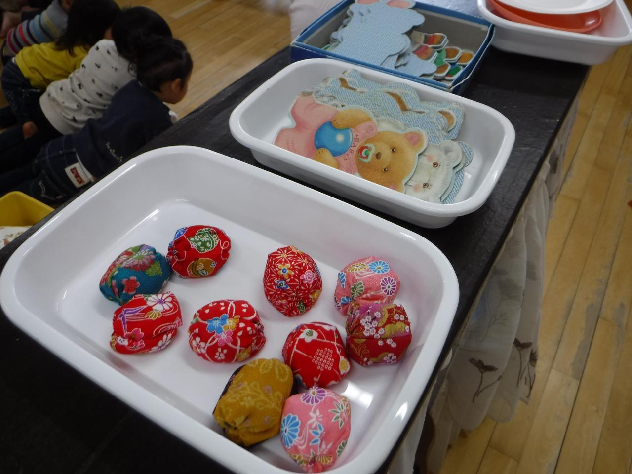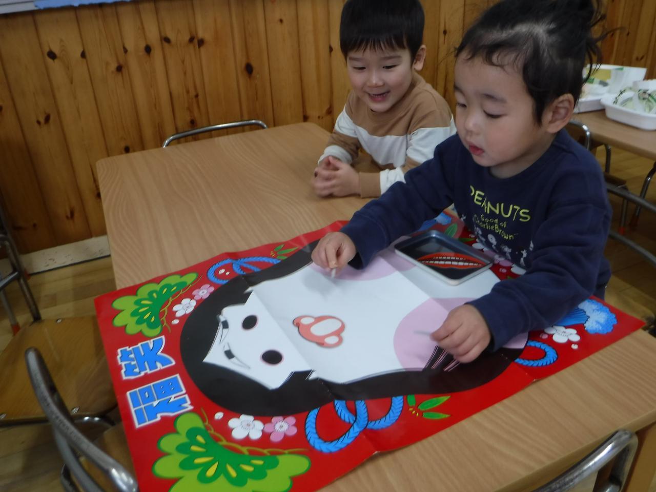 〇絵合わせや福わらいで遊ぶことを通して、絵や色、形への興味関心につなげる
