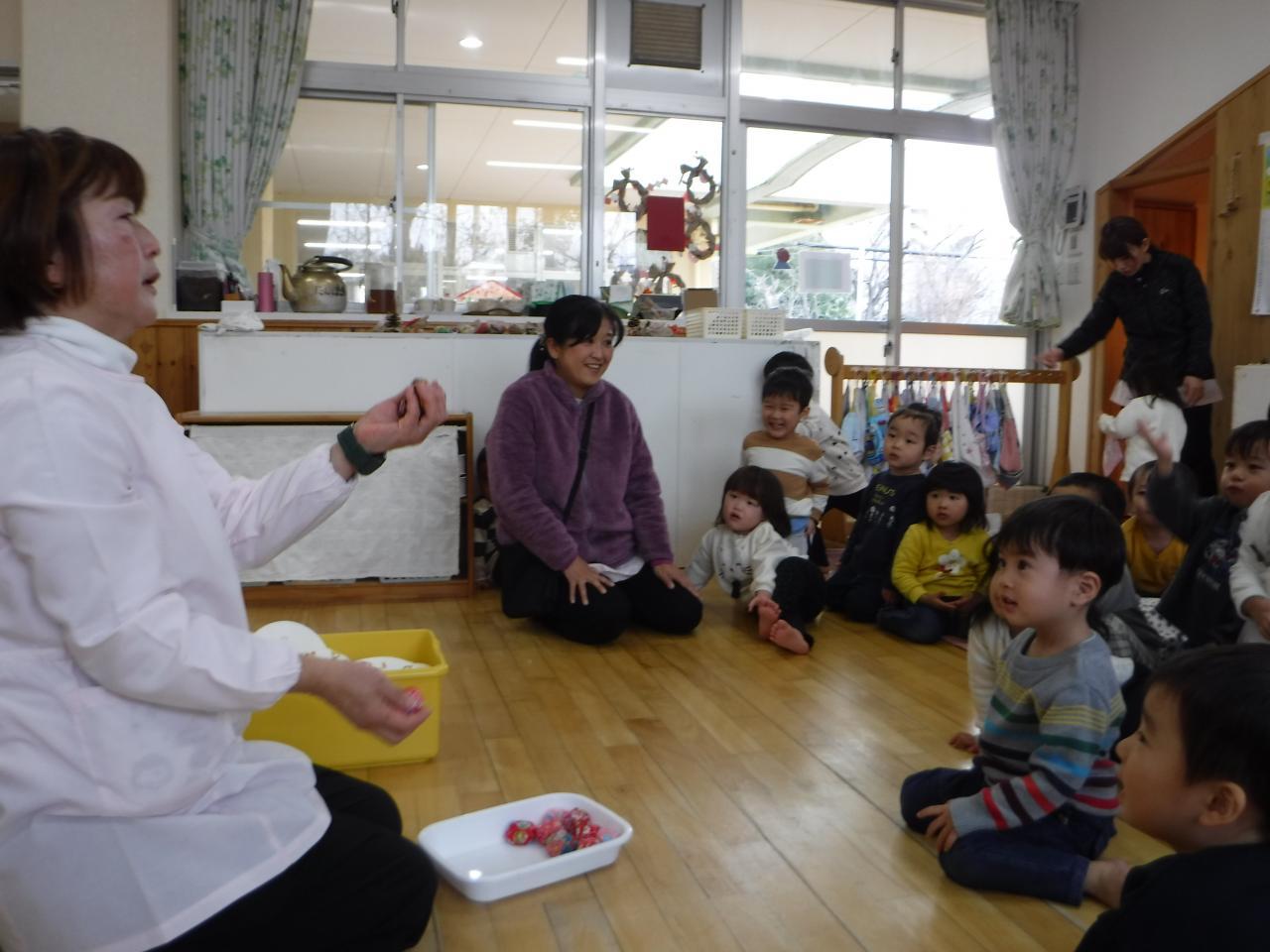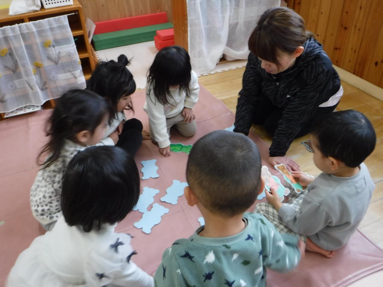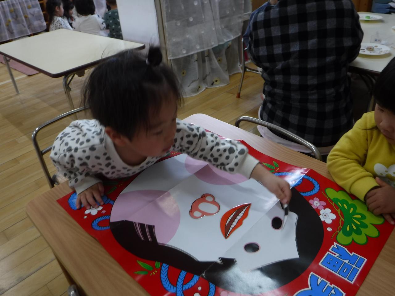 〇絵合わせや福わらいで遊ぶことを通して、絵や色、形への興味関心につなげる