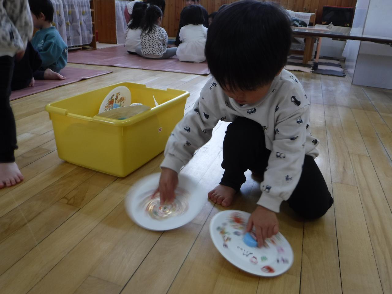 「お皿の上にコマがのったよ!」と、子ども達も大興奮でした!