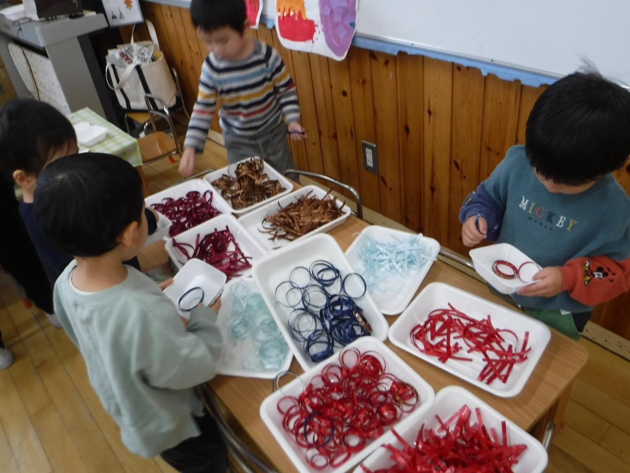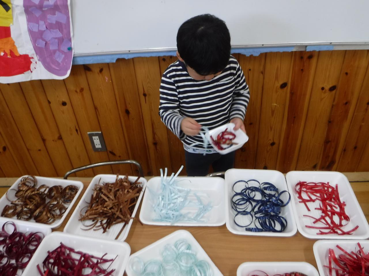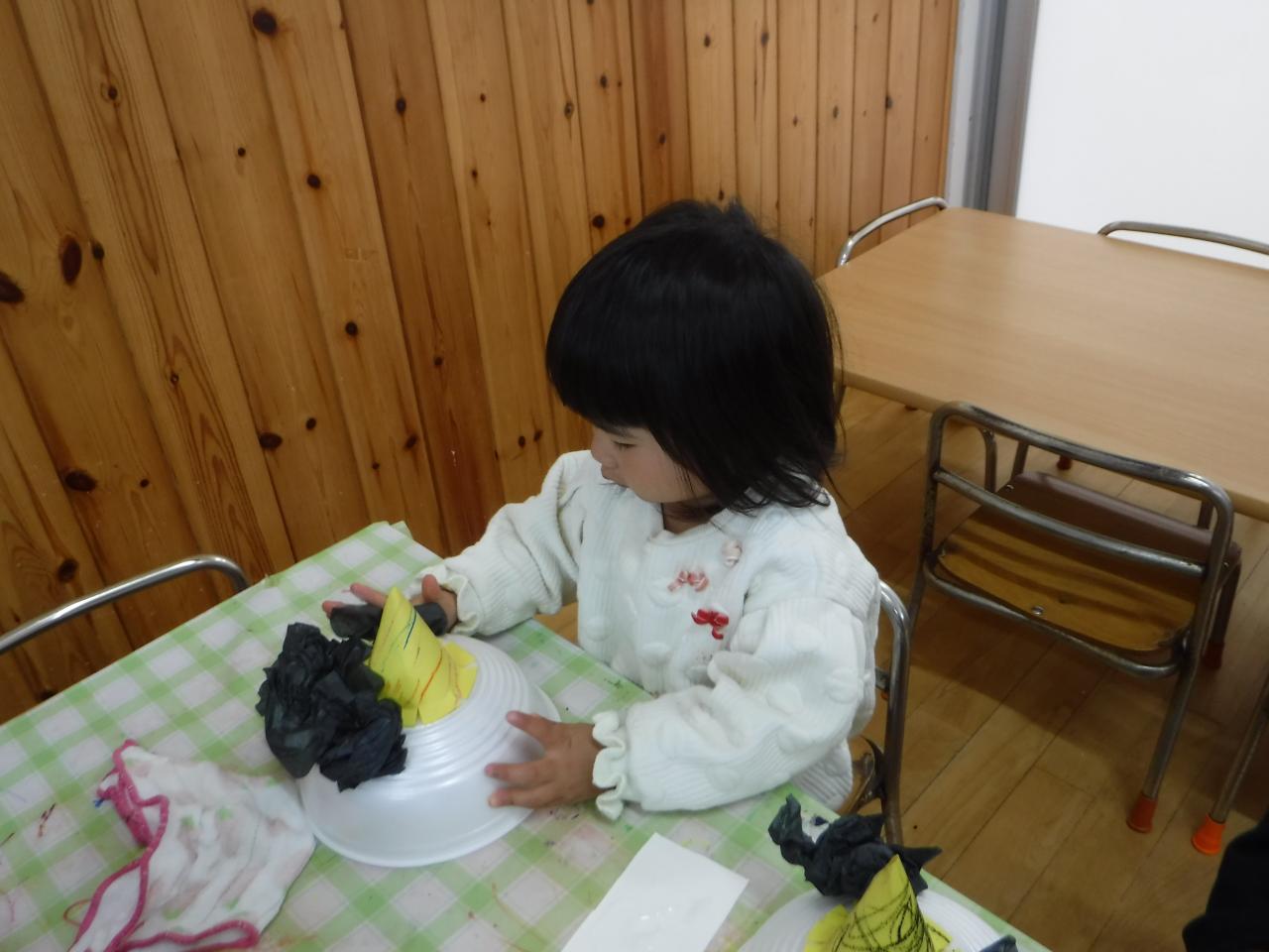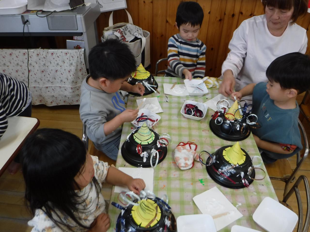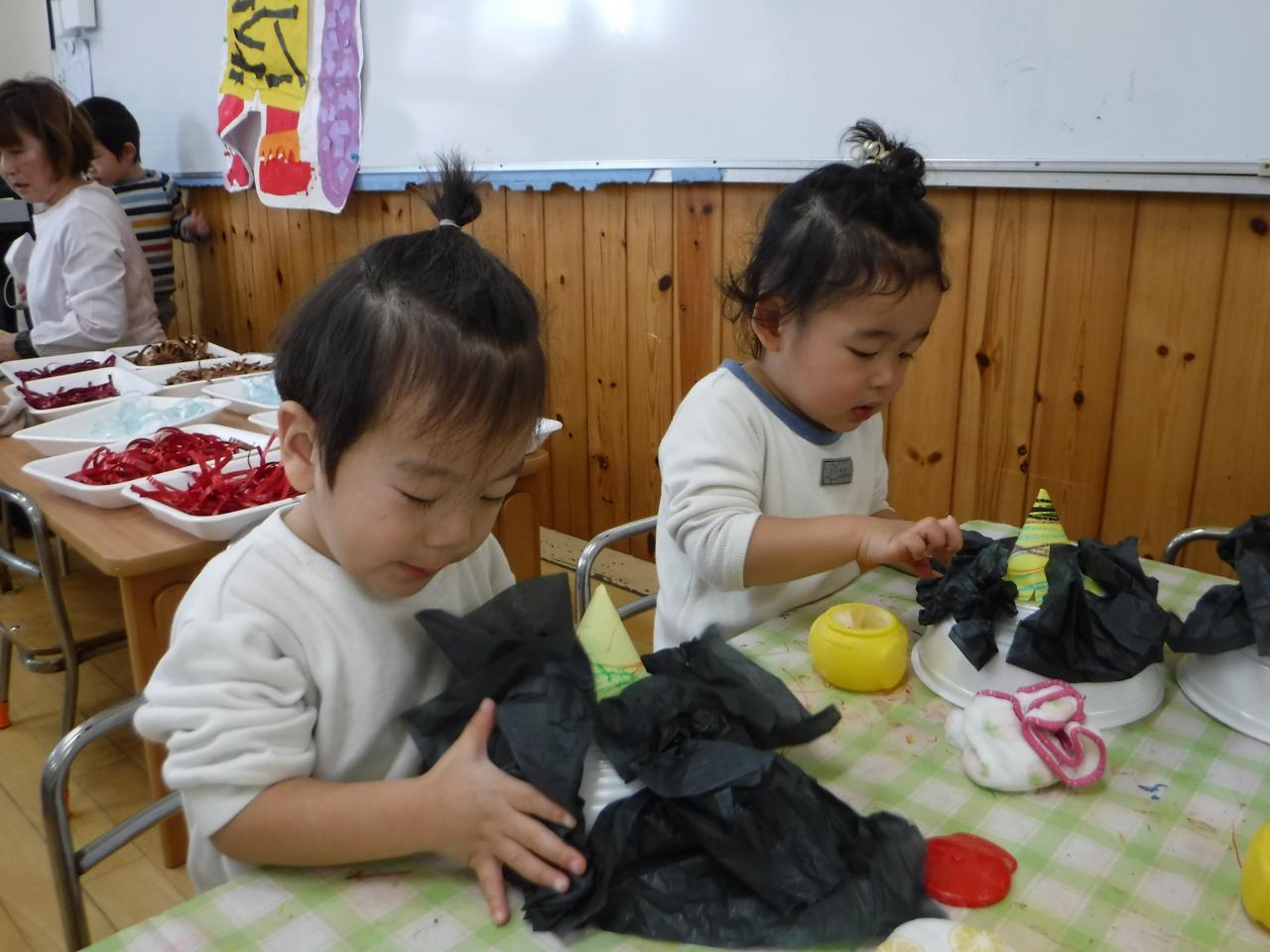 レモンチームは花紙とのりを使って、オニの髪を表現しました
