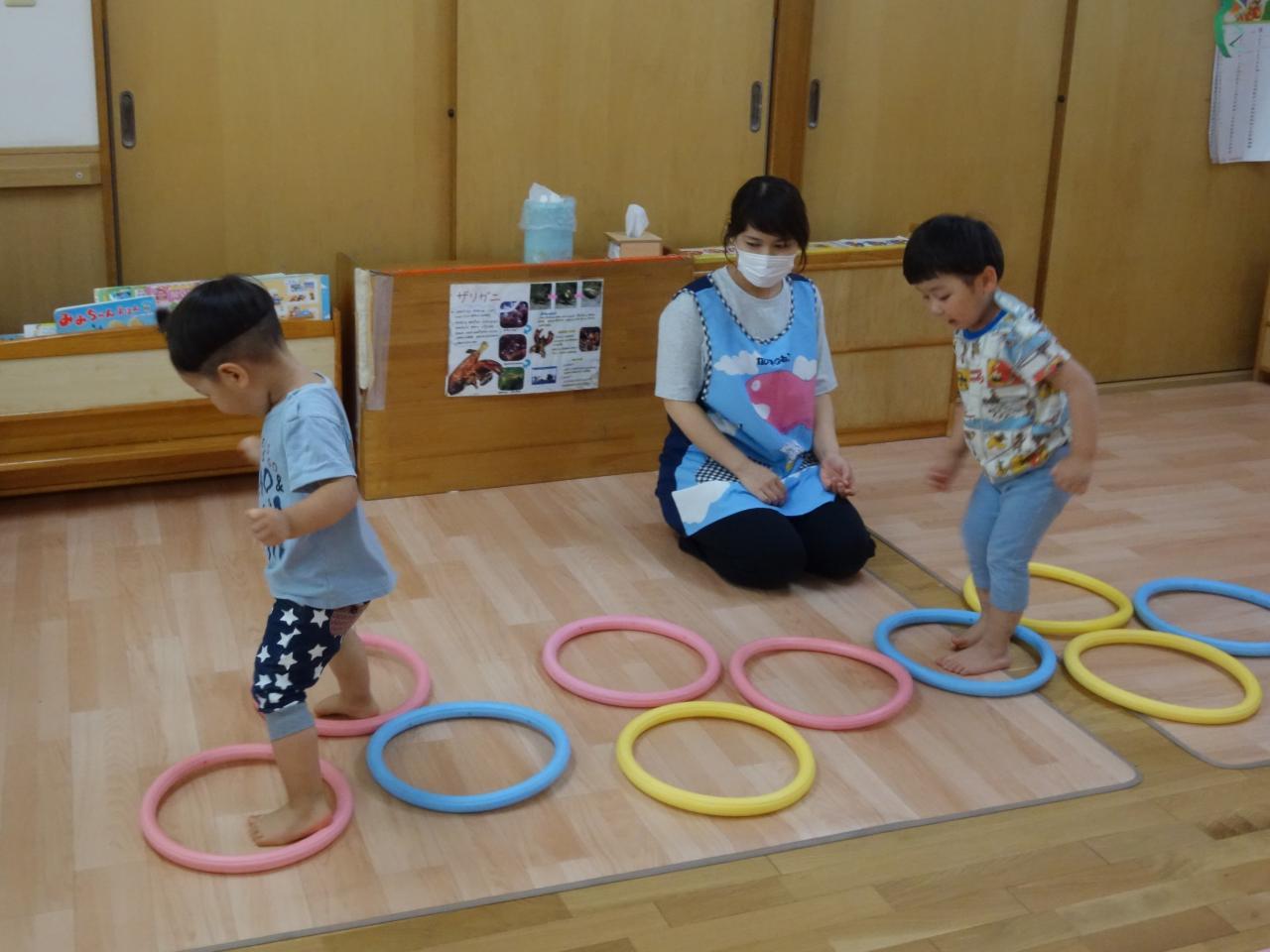 運動遊びを行いました。慎重に足をグー、パーしながらジャンプ!体力がついてきてスムーズに1人で跳べるようになってきましたよ。