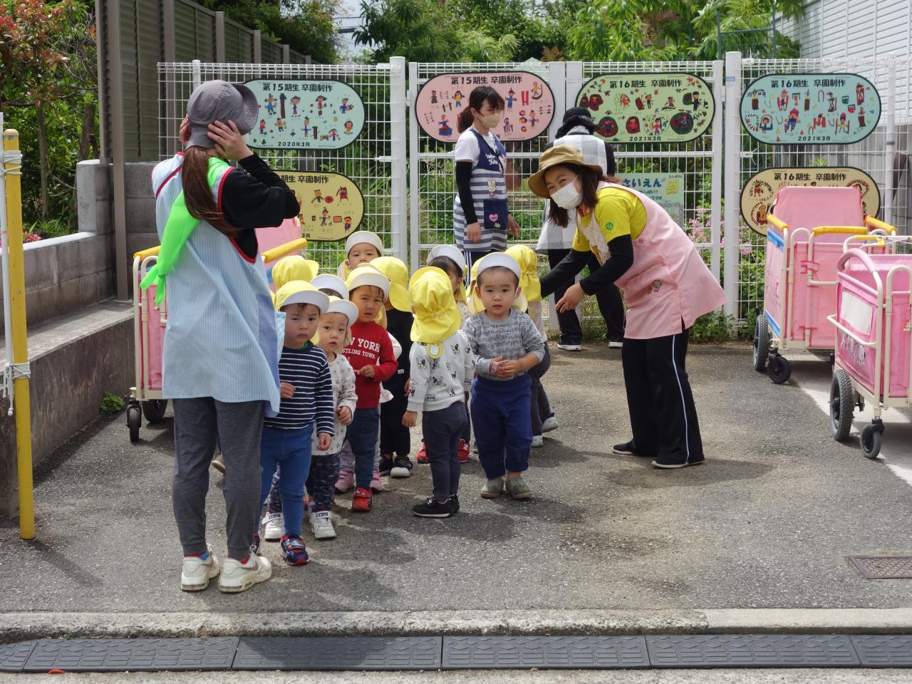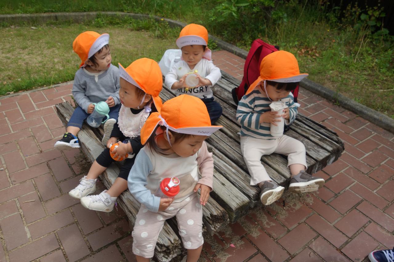 大美野公園まで散歩車に乗って出かけました。ギッタンバッタンとシーソーを楽しんだり花壇に咲いているお花を眺めたりと楽しいひとときを過ごしました。水筒のお茶で水分補給もしっかり行いました🌞