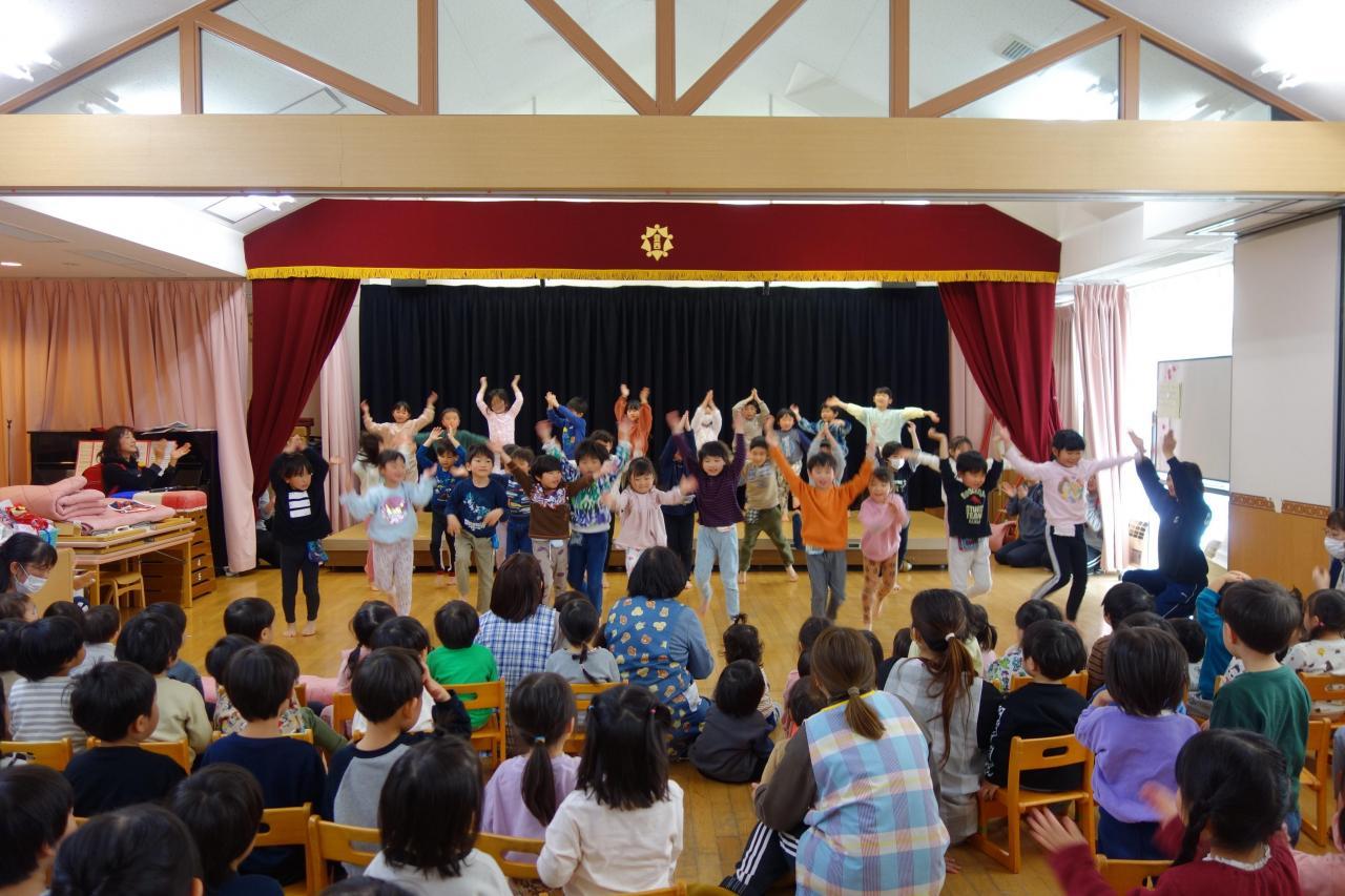 🐘5歳児ぞう組のお別れ会を行いました。4~0歳児クラスの子どもたちからは歌🎵のプレゼント、保育者からは『秘密のプレゼント』の劇を贈りました。突然届いたプレゼントを開けてみるとランドセルと思い出の写真が入っていて1年間を振り返ることができ、子どもたちは大喜びでした。お礼にと、ぞう組の子どもたちは発表会のダンスを踊って披露してくれました。みんなイキイキと楽しそうでしたよ🤩