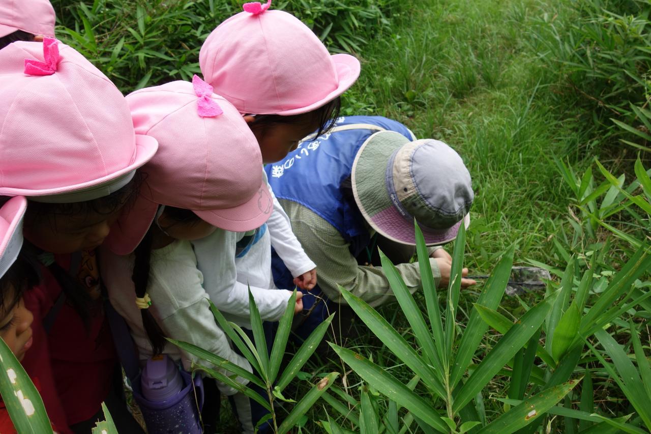 大型バスに乗って夏の遠足にでかけました。午前中は川の流れる小道の横を歩きました。クモ🕷の巣に水を吹きかけるとキラキラ✨光り、子どもたちは大喜び😆「ここにもクモの巣ある、先生、水かけて」「大きいクモのおうちやなぁ」と声があがっていました。園ではなかなか見られない虫たちにも沢山出会いましたよ。熱中症対策の為、日の当たる場所での活動は最小限にしました。