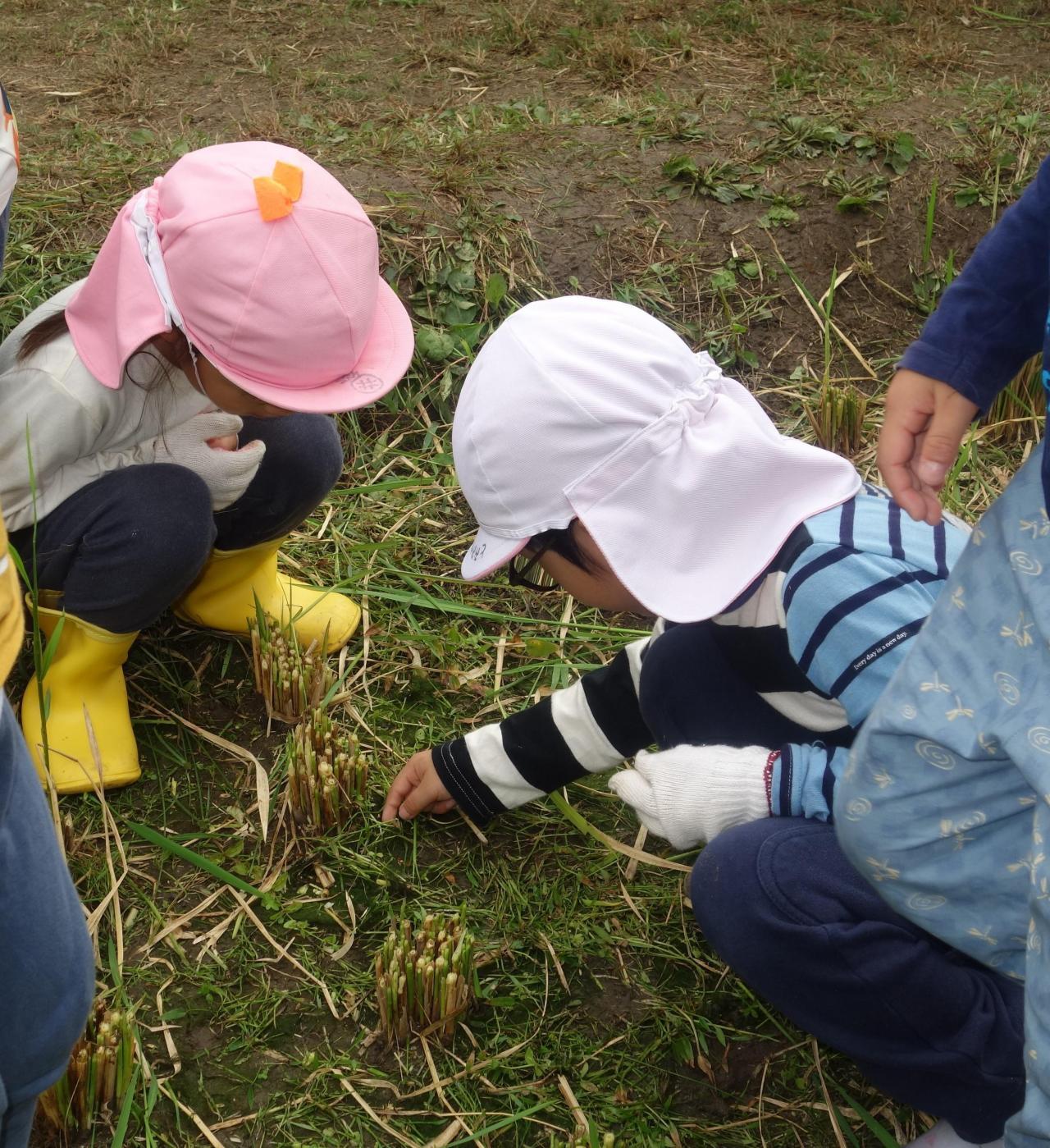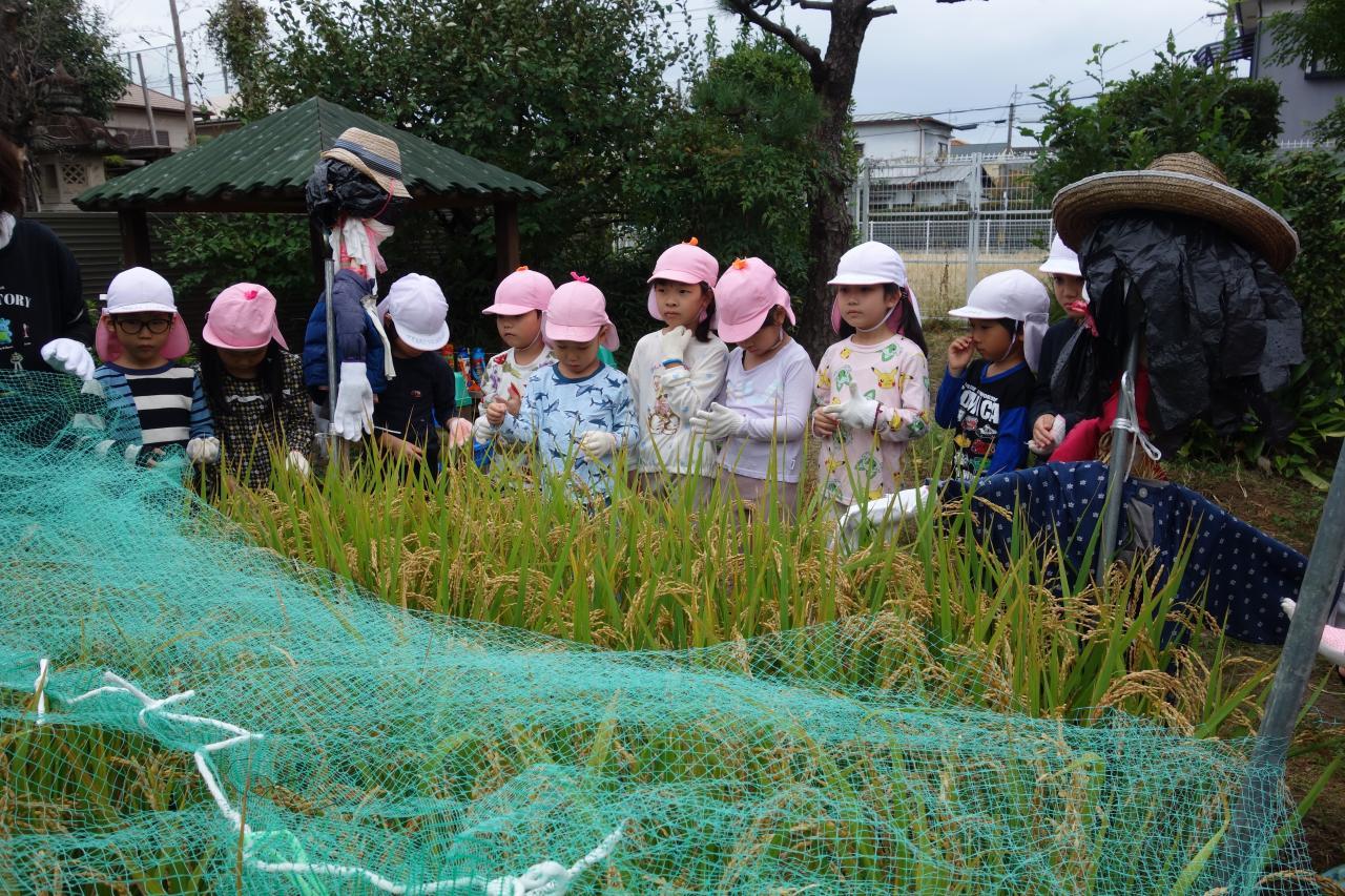 「鳥さん食べてもいいよ」と少しだけ網をかけずにいたのですが、網をかけているお米の方が沢山鳥に食べられており「なんでやろう?」と話し合いが始まりました。結果、「網に足を置けるから中のお米をゆっくりと食べやすかったんやで」とまとまりました(子どもらしい発想ですね!)。