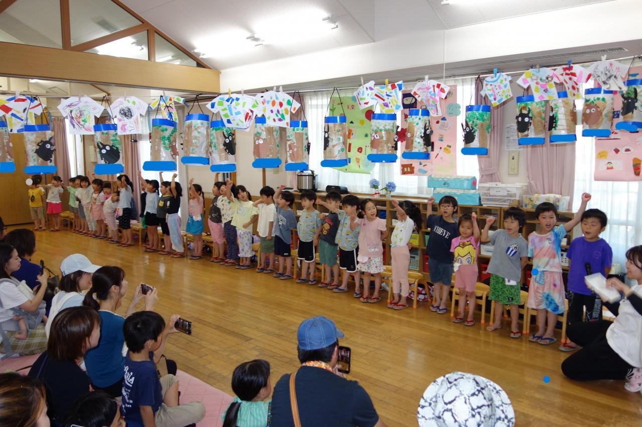 お家の人の前で歌と1日の感想を発表しました。