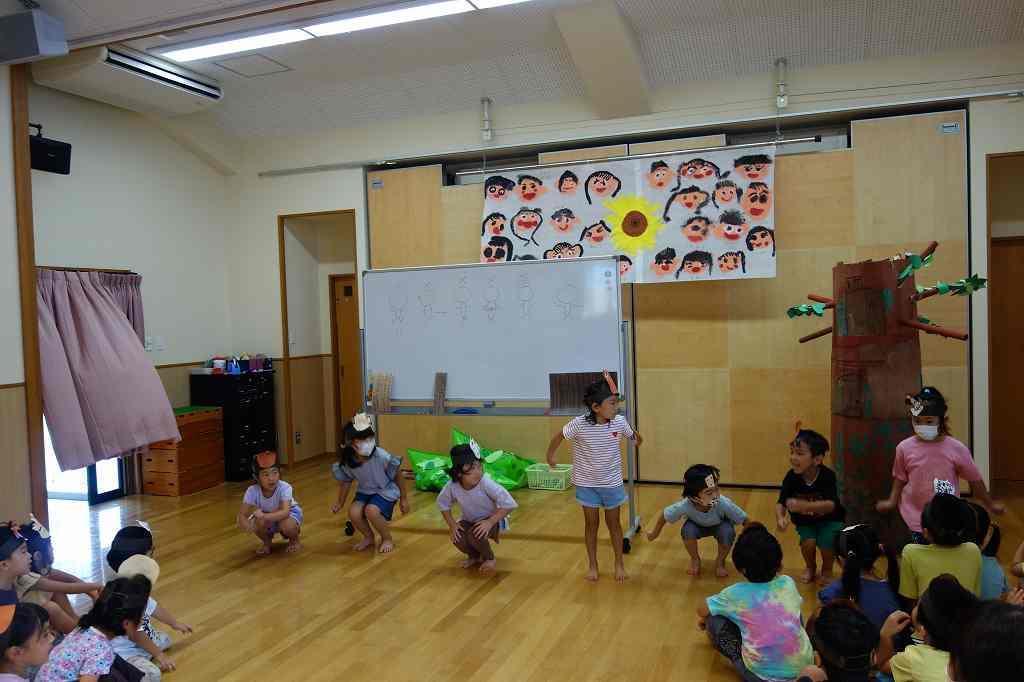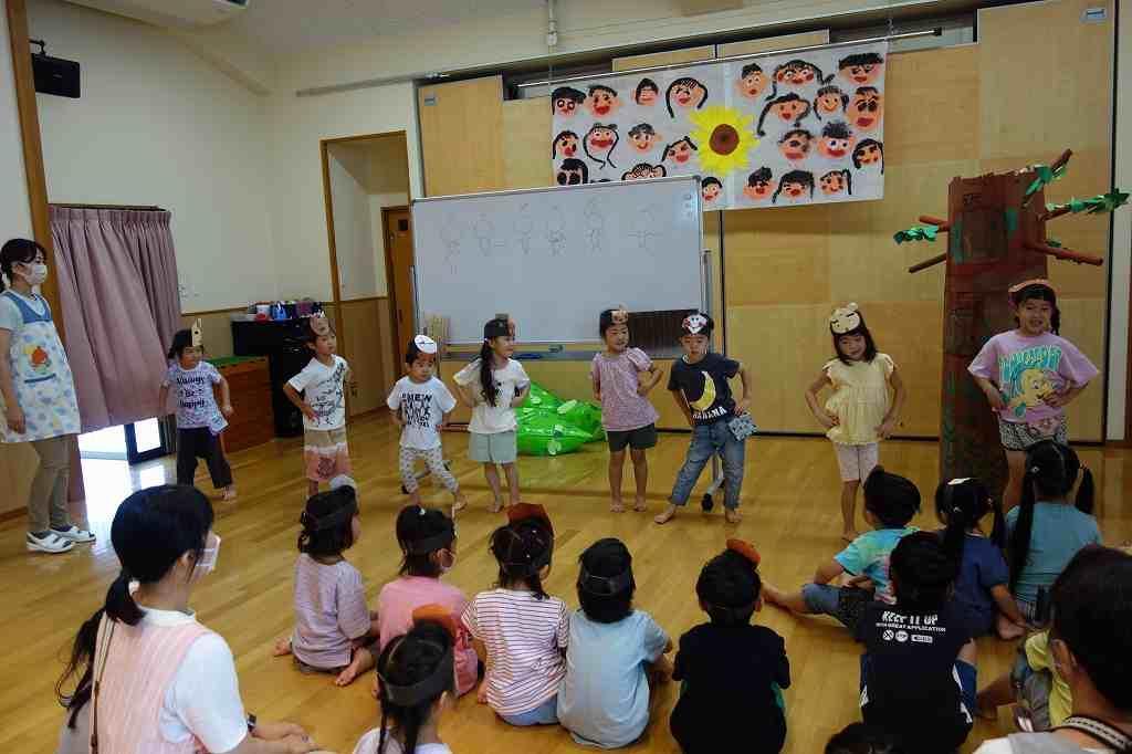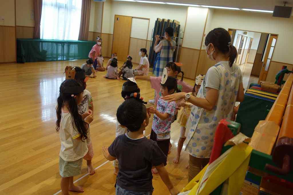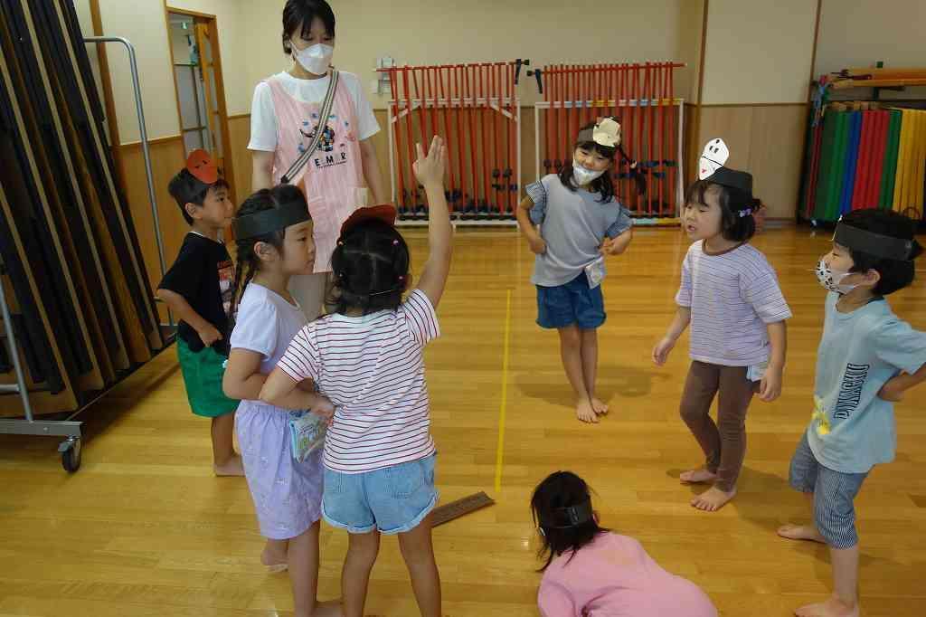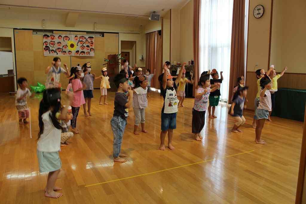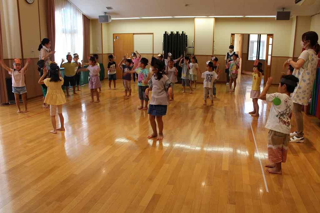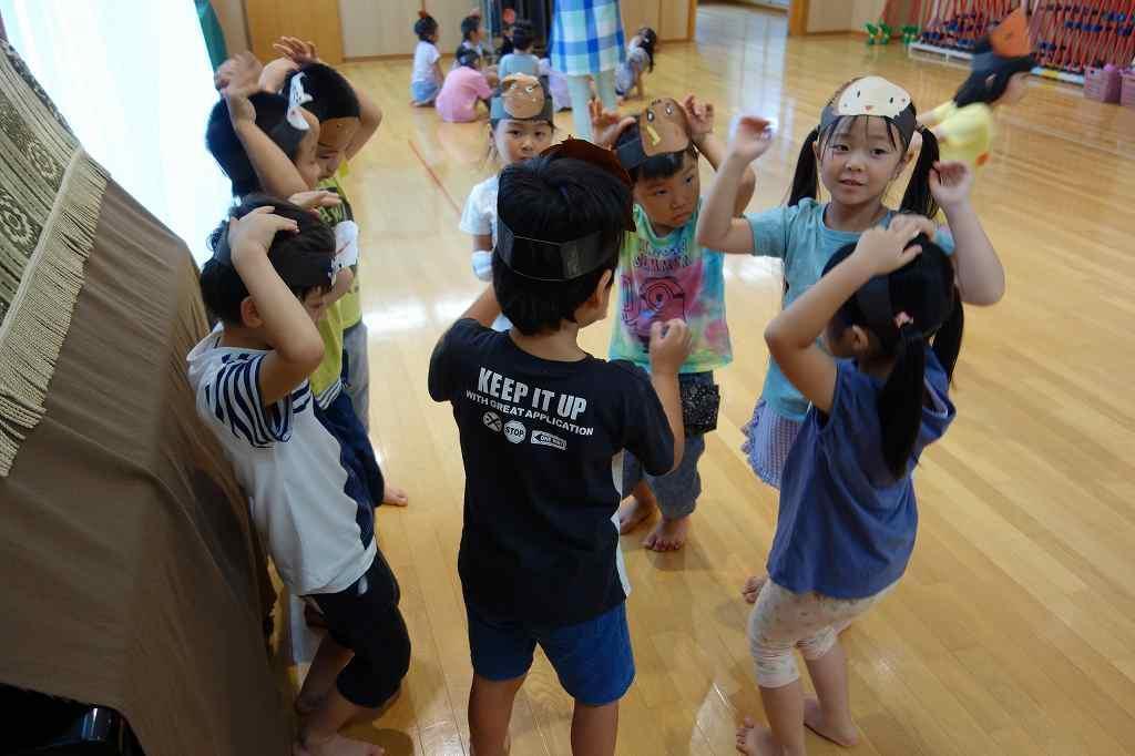 そして3つのグループが考えた動きを組み合わせて、歌「すずめのサンバ」に合わせてみんなで踊ってみました。音楽によく合い全身をしっかり使う、そして3匹が困らず参加できる体操に仕上がりましたよ。
