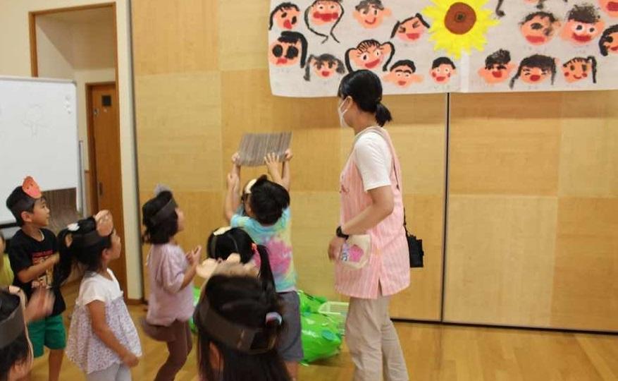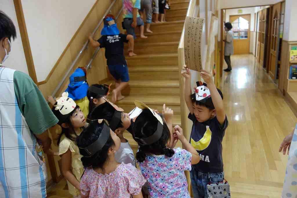 『楽しかったねー』と体操を終え、みんなで話していると、風と共に手紙が舞い込みました。それは大家さんからの手紙でした。大家さんはみんなが笑顔で踊っていることを見てくれていたようです。「早速しあわせアパートのみんなにも知らせてくるよ」という内容に、子ども達も『喜んでもらえたんだ』と嬉しい気持ちになり、感激して涙をこぼす子もいましたよ。