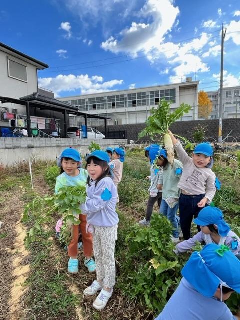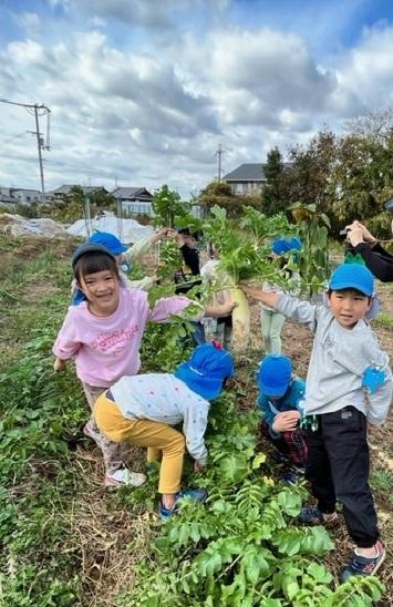 収穫した大根は、今後の昼食で炊き込みご飯にし、子ども達が自分の食べる分をおにぎりにして食べる予定にしています。