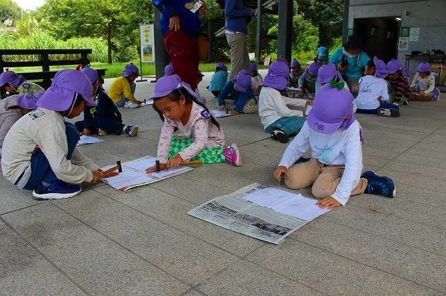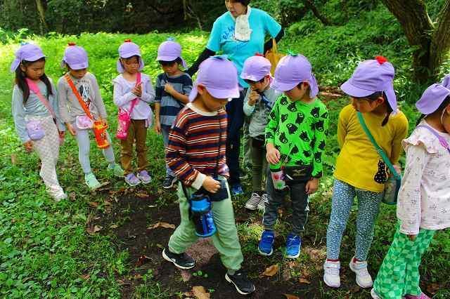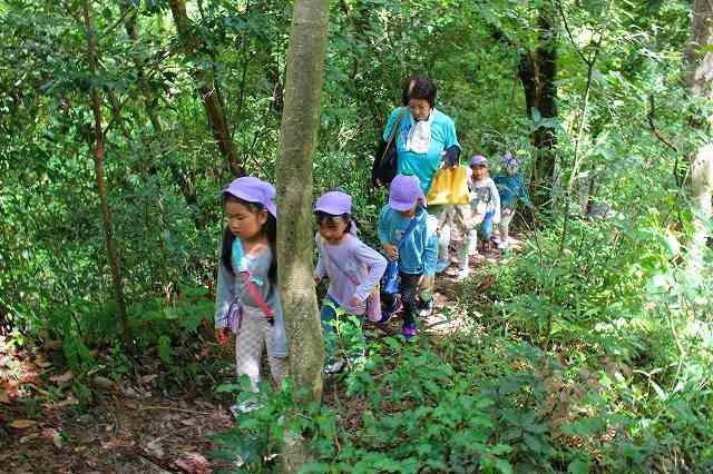 堺市の"自然ふれあいの森”に、5歳児ひまわり組が遠足に行ってきました。今回は″夏”の森。自然体験を通して身近な自然に興味・関心を持つ事ができるこの季節ならではの経験をしてきました。