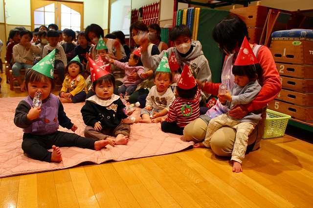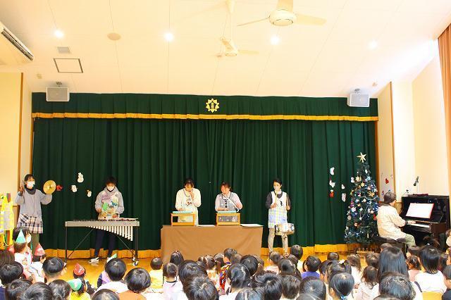 まもなくクリスマス。園では、16日に昨年卒園した子ども達を招いての会、20日は在園児の会、21日は園庭開放で地域の方を対象としたクリスマス会を行いました。