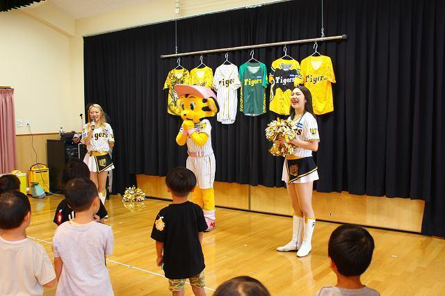 キラキラしたポンポンを手にした2名のタイガースガールズの入場に、高揚感も一気に増し、一緒にダンスの練習をした後は、皆でマスコットキャラクターの‟ラッキー”を呼び込むことに。。。