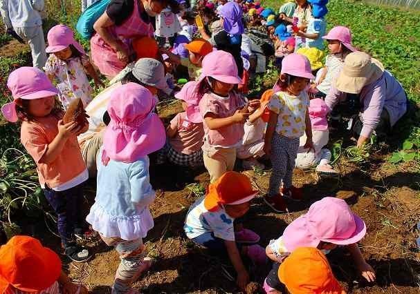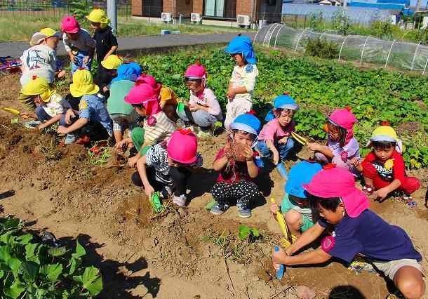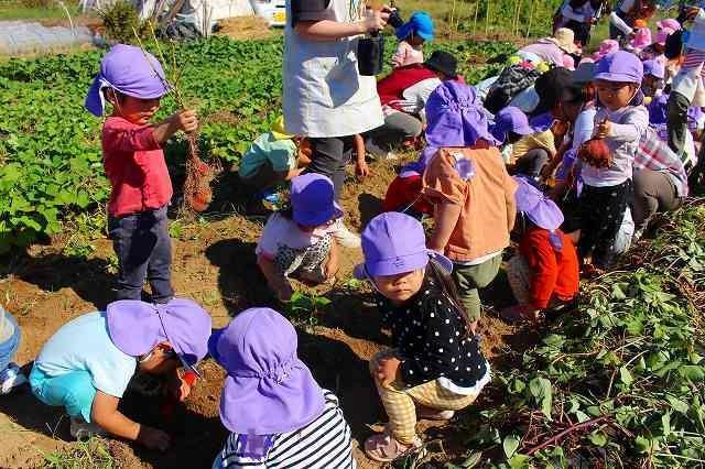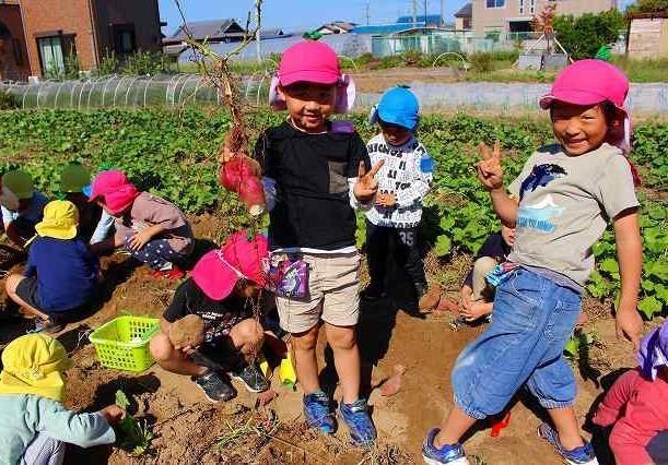 今年の夏の猛暑で例年より少なめでしたが、大小混ぜて200本以上の収穫がありました。来週予定の収穫祭で焼き芋にしたり、昼食やおやつのメニューで大切にいただいたりします。