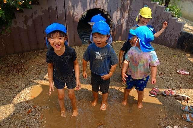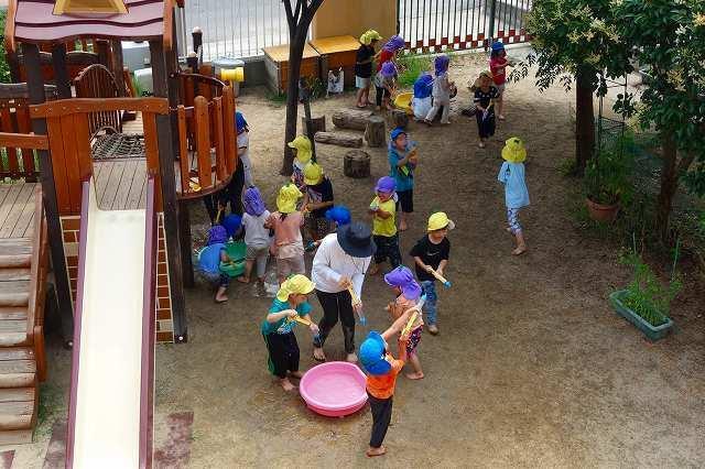 毎日晴れ渡った青空が広がる中、子どもたちは暑さに負けず、伸び伸びと遊んで過ごしています。暑さ指数や急な天候の変化が影響し、戸外で遊べない日がありますが、夏ならではの遊びを存分に経験出来るよう、各クラス・ファミリーで計画しています!