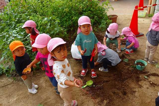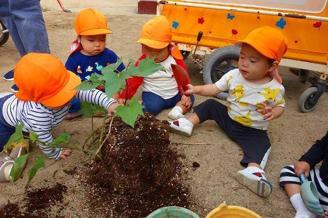 0,1歳児さんの園庭でのいもほりの様子