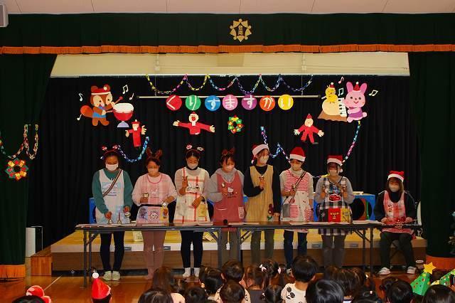 サンタさんも見守る中、各クラスの発表がありました。
