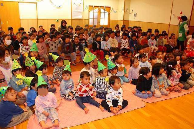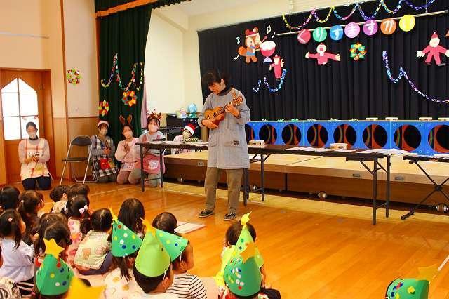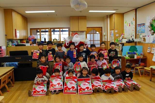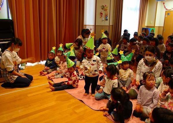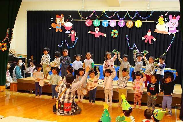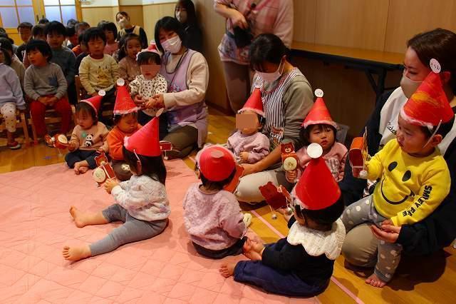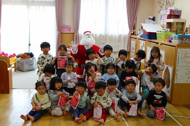 この時季のお楽しみの一つ!!クリスマス会に参加しました。保育者の演奏を聞いたり、サンタクロースの登場に歓声を上げたり、また各クラスでの歌や合奏をみんなに披露したりしました。サンタクロースからプレゼントをもらって、一緒に記念写真も撮りましたよ。