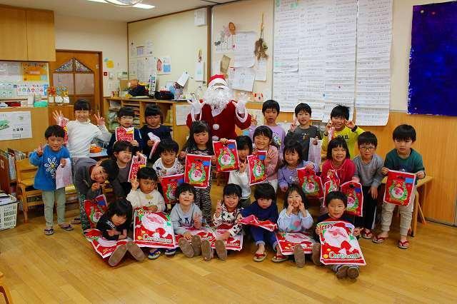 会の終了後にはサンタさんが各保育室にやってきました。