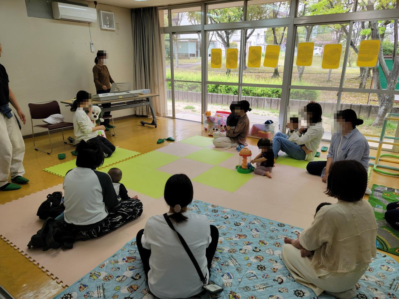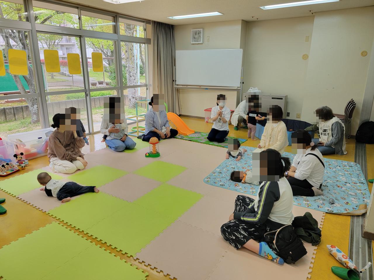 ふれあい遊びなので、体操と違って子ども達を寝ころばせて歌に合わせて体を触ったり動かしたりなので、乳幼児にもちょうど良く、今回参加してくれた子ども達は一緒にニコニコ、楽しんでくれていました。