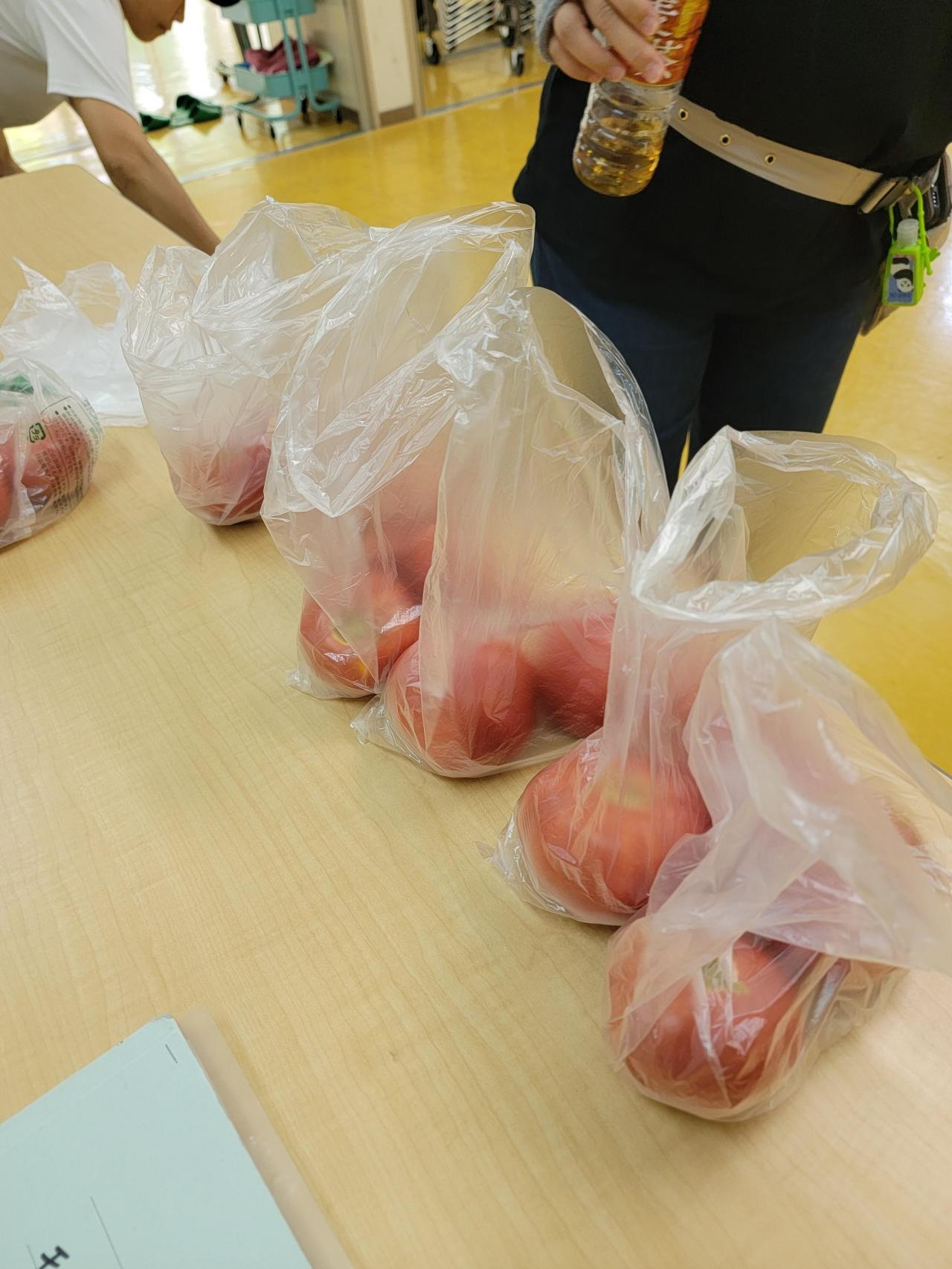 またボランティアさんから家庭でとれたトマトを提供してくれましたので、参加者皆さんにお配りしました。