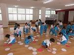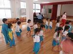 ふれあい遊びでは、ピアノの音に合わせて汽車になったり、トンネルくぐりをしたりスキップ、散歩を2人ペアになって行いました。