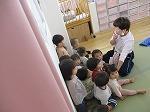 0・1歳児は、不審者が見えて驚く姿がありましたが放送を聞き職員の誘導で素早く集まることができました。