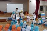 不審者からどうやって身を守って逃げるのかの話を聞いたり代表の友だちが前に出て、「いかのおすし」の約束事も答えることが出来ました。