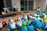 津波や壊れた建物の写真を見て驚く姿もあり、「おはしもち」の約束では手を挙げて発表するなど集中して話を聞きました。