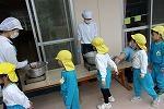 1・2・3・4・5歳児は外で炊き出しの様子も見学し、調理の先生から備蓄品を使用した調理方法を教えてもらいました。