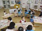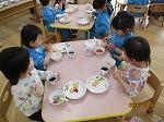 今日のメニューは、ソフトせんべい、フルーツゼリー、いちご、星ポテト、ぶどうジュース、りんごジュース!!たくさん種類があってみんな大喜びでした。012歳は音楽を流して楽しく、みんなで楽しく食べました。「スプーンこうして使うよ!」や「袋あけれる?」など笑顔で声をかけあい優しい雰囲気が溢れていました。345歳はくじを引き3クラスに分かれて食べました。自分でおやつを配膳し、友だち同士で楽しくお話ししながら食べる姿がありました。「たのしかった!」「いっぱいおかわりできた!」と、とても喜んでいました。