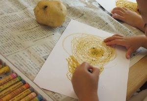 掘ったジャガイモの中から、絵を描くため一つ選んでお部屋に。