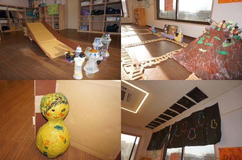 これを使って何か楽しいことができないかクラスで話し合ったところ、「電車を作りたい!」「山があったら楽しいな」「滑り台はどう?」とたくさんのアイデアが子ども達から出ました。
