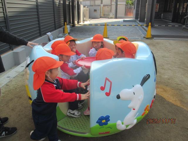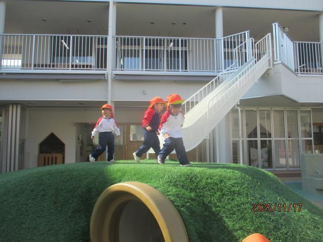 今日のラジオ体操は、ばら組&さくら組さんだけ園庭で体操をしました。せっかくなので、ばら組さんに朝のごあいさつと一言をいってもらいましょう~。たくさんのお友達がやりたい!と手を挙げてくれましたが、前にいたS君にお願いしました。びっくりするくらい大きな声でご挨拶をしてくれ、金曜日のミカン狩りの話までしてくれました!とても上手な朝の一言でした💕ミカン狩りをと~っても楽しみにしてくれているようです😄