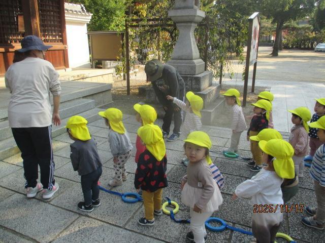 インフルエンザのお友達がゼロになりました!みんな元気に登園し、久しぶりの笑顔を見せてくれました。さくら組さんは兵主神社までお散歩にお出かけしました。